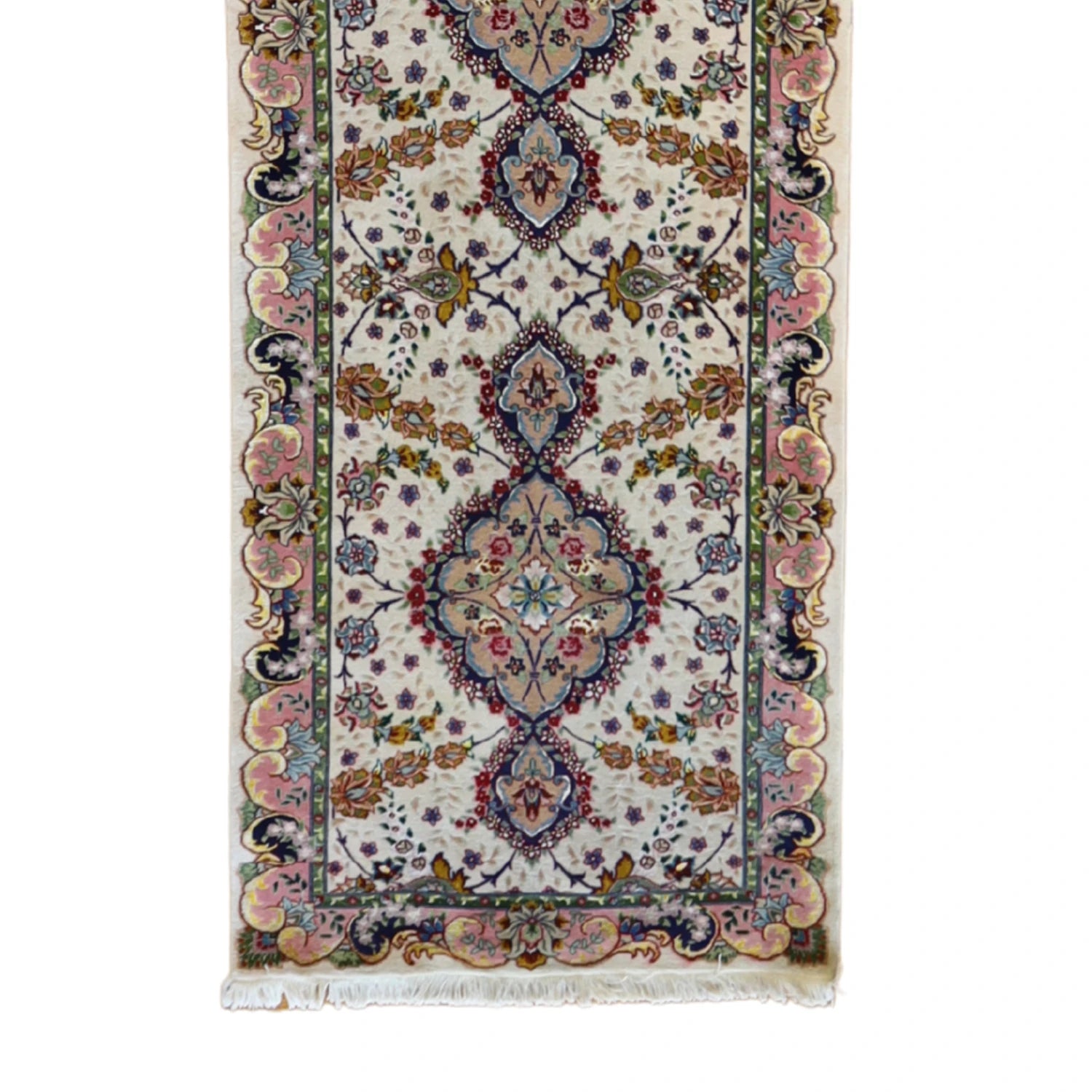 Bring style and flow to your space with this handcrafted PERSIAN TABRIZ runner rug, designed in a classic FLORAL style. Measuring approximately 3' x 3 ft, it's the perfect fit for hallways, entryways, kitchens, or alongside a bed.