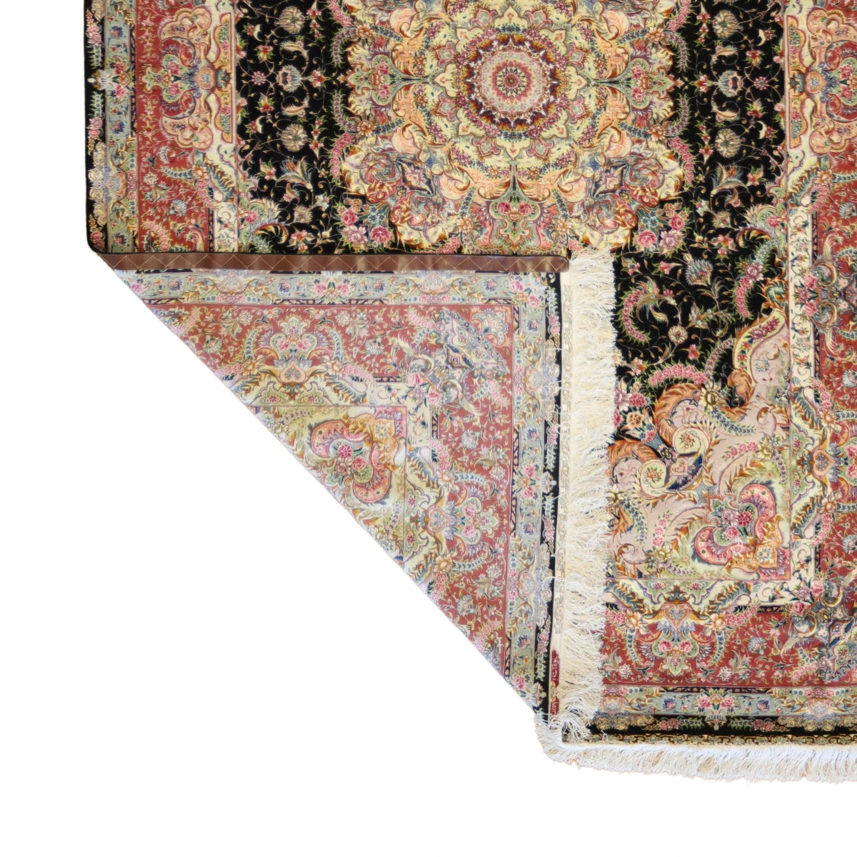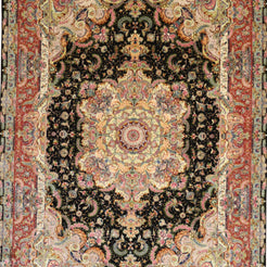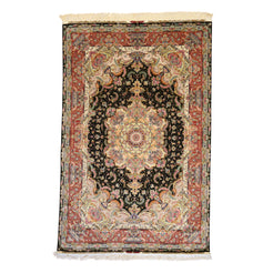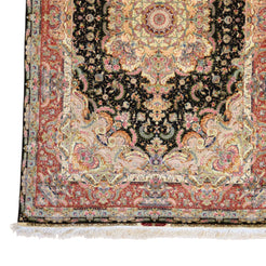 Woven from high-quality SILK&WOOL, this rug delivers lasting durability and a luxurious feel underfoot. The deep BLACK base color is beautifully complemented by a ROSE border, creating a striking visual balance.