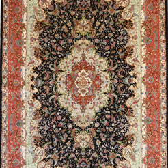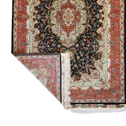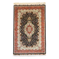 Woven from high-quality SILK&WOOL, this rug delivers lasting durability and a luxurious feel underfoot. The deep BLACK base color is beautifully complemented by a ROSE border, creating a striking visual balance.