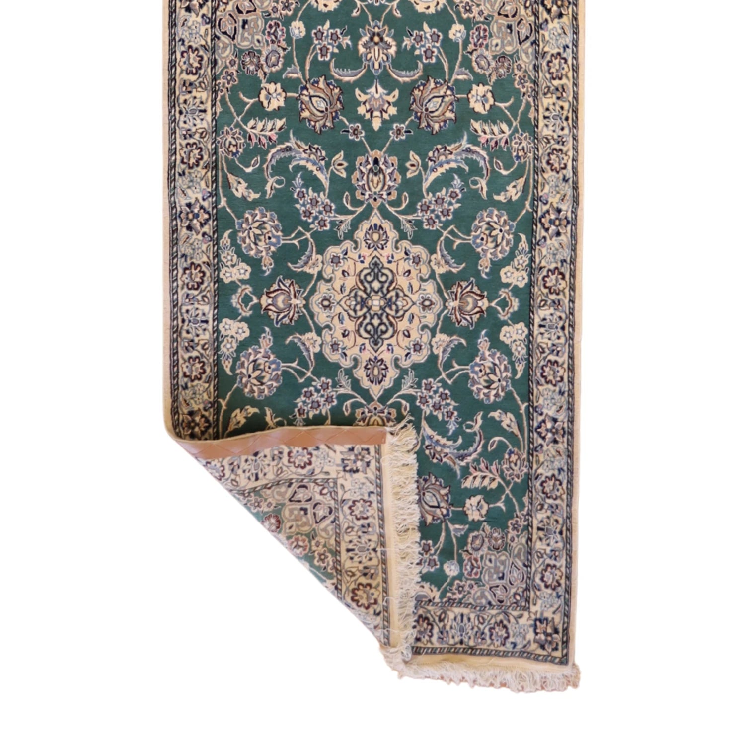 Bring style and flow to your space with this handcrafted PERSIAN NAEIN runner rug, designed in a classic FLORAL style. Measuring approximately 3' x 3 ft, it's the perfect fit for hallways, entryways, kitchens, or alongside a bed.