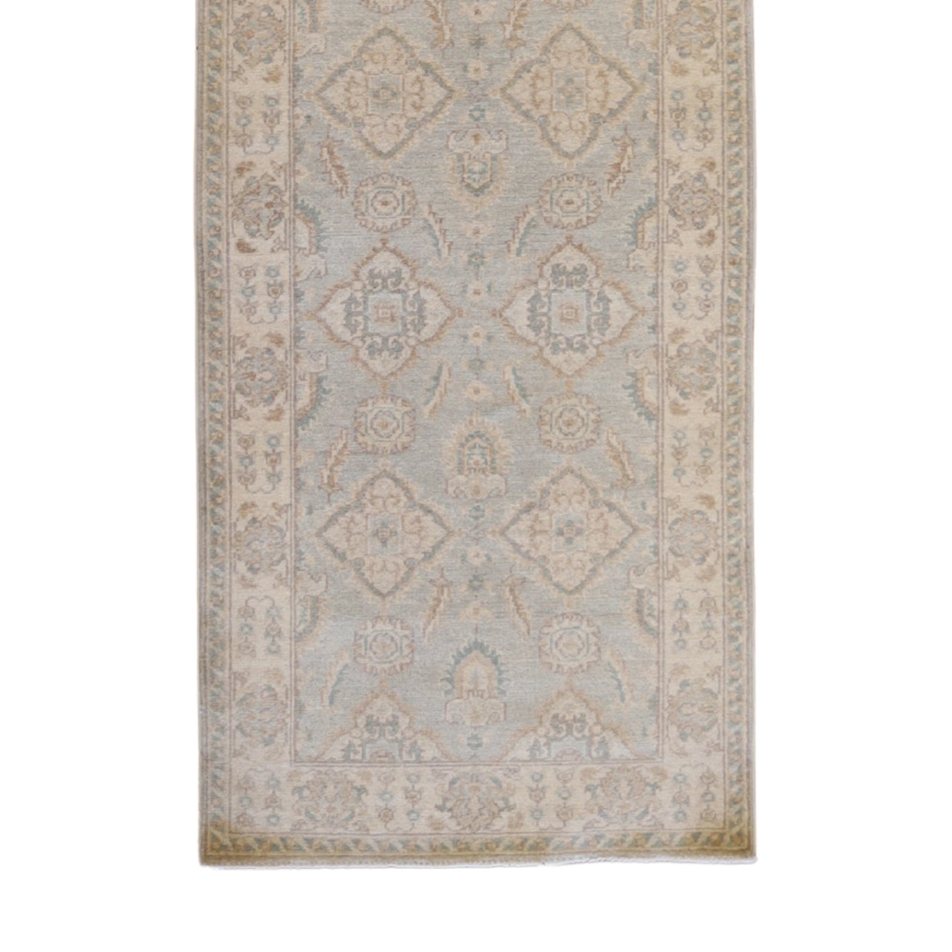 Made from high-quality WOOL, this runner is both durable and soft underfoot. The elegant AQUA base color paired with a refined BEIGE border adds warmth and movement to your interior.