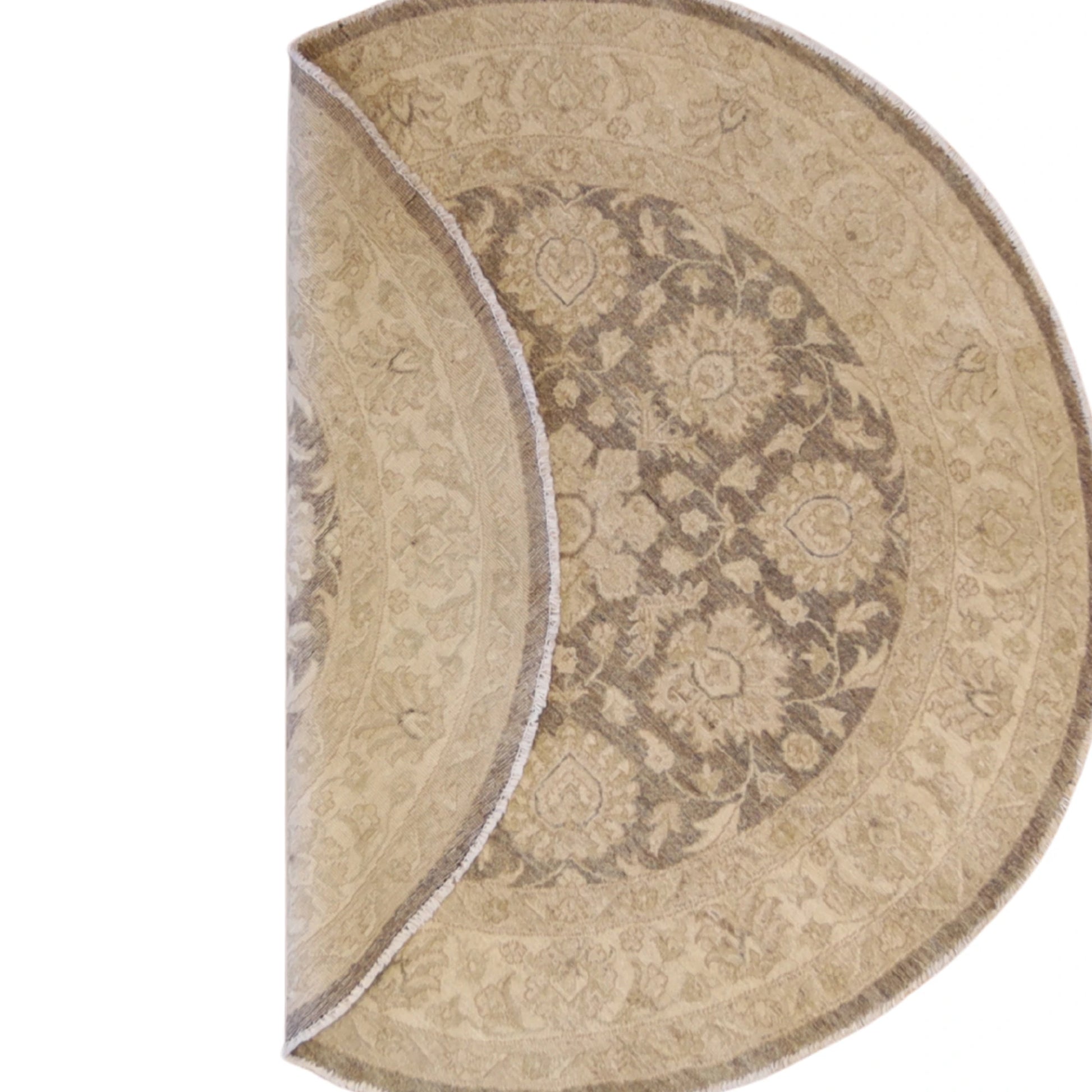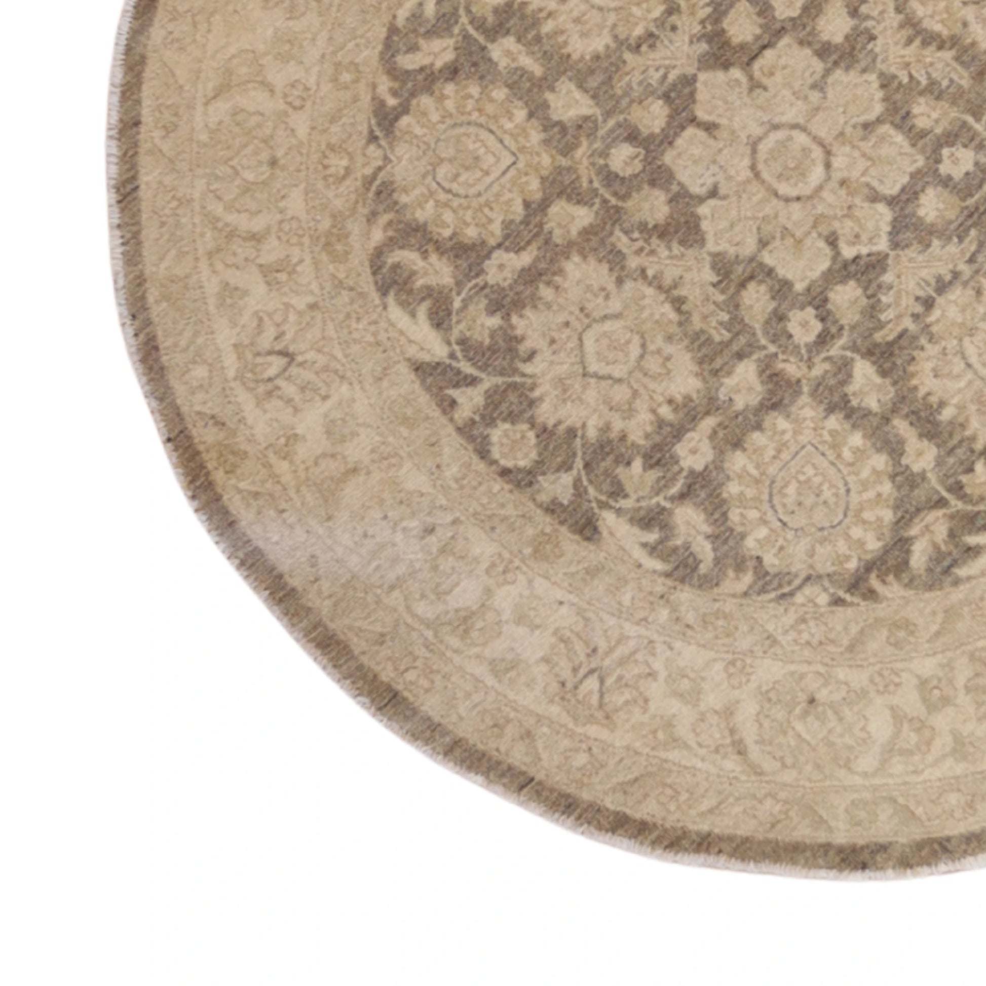 Add softness and style to your space with this handcrafted round PAKISTANI PESHAWAR rug, designed in a timeless FLORAL look. Measuring approximately 4' x 4 ft, it's perfect for under coffee tables, in reading nooks, entryways, or anywhere you want a cozy focal point.