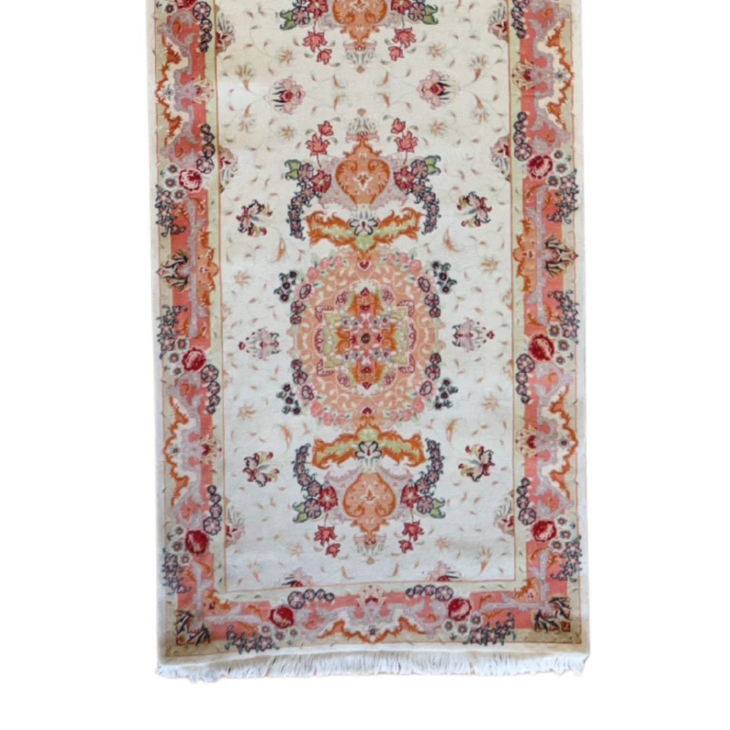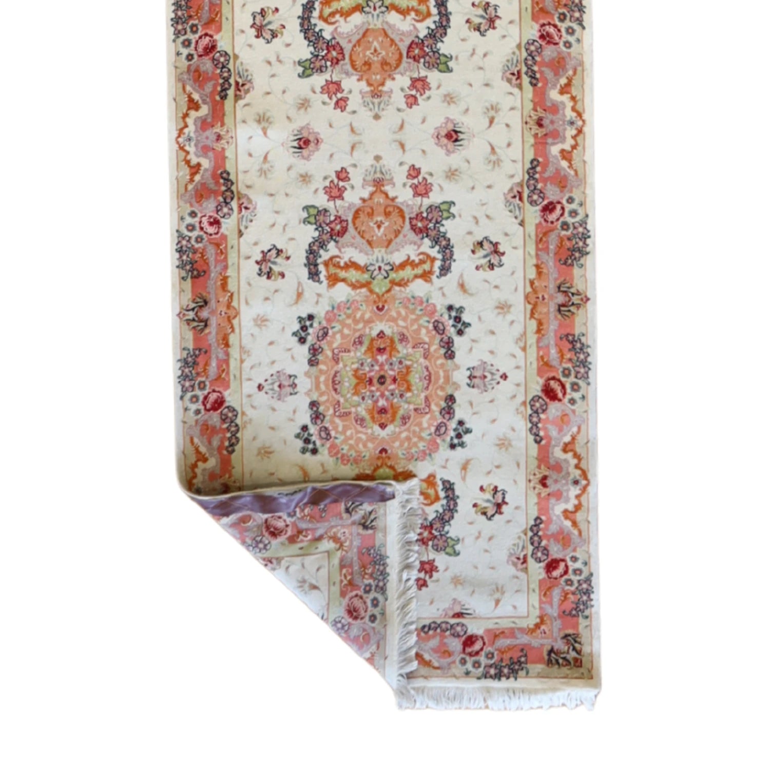 Bring style and flow to your space with this handcrafted PERSIAN TABRIZ runner rug, designed in a classic FLORAL style. Measuring approximately 2' x 2 ft, it's the perfect fit for hallways, entryways, kitchens, or alongside a bed.