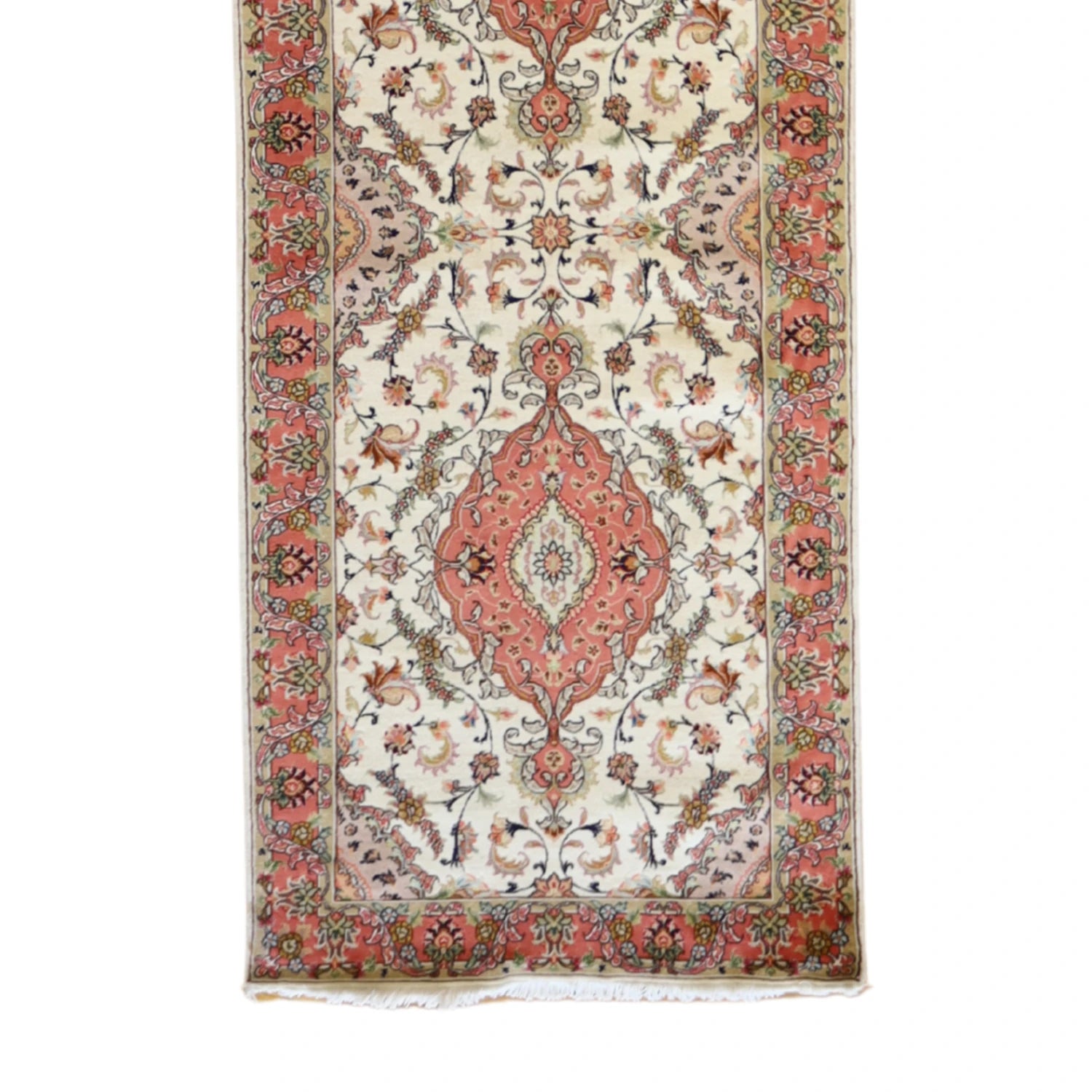 Bring style and flow to your space with this handcrafted PERSIAN TABRIZ runner rug, designed in a classic FLORAL style. Measuring approximately 3' x 3 ft, it's the perfect fit for hallways, entryways, kitchens, or alongside a bed.