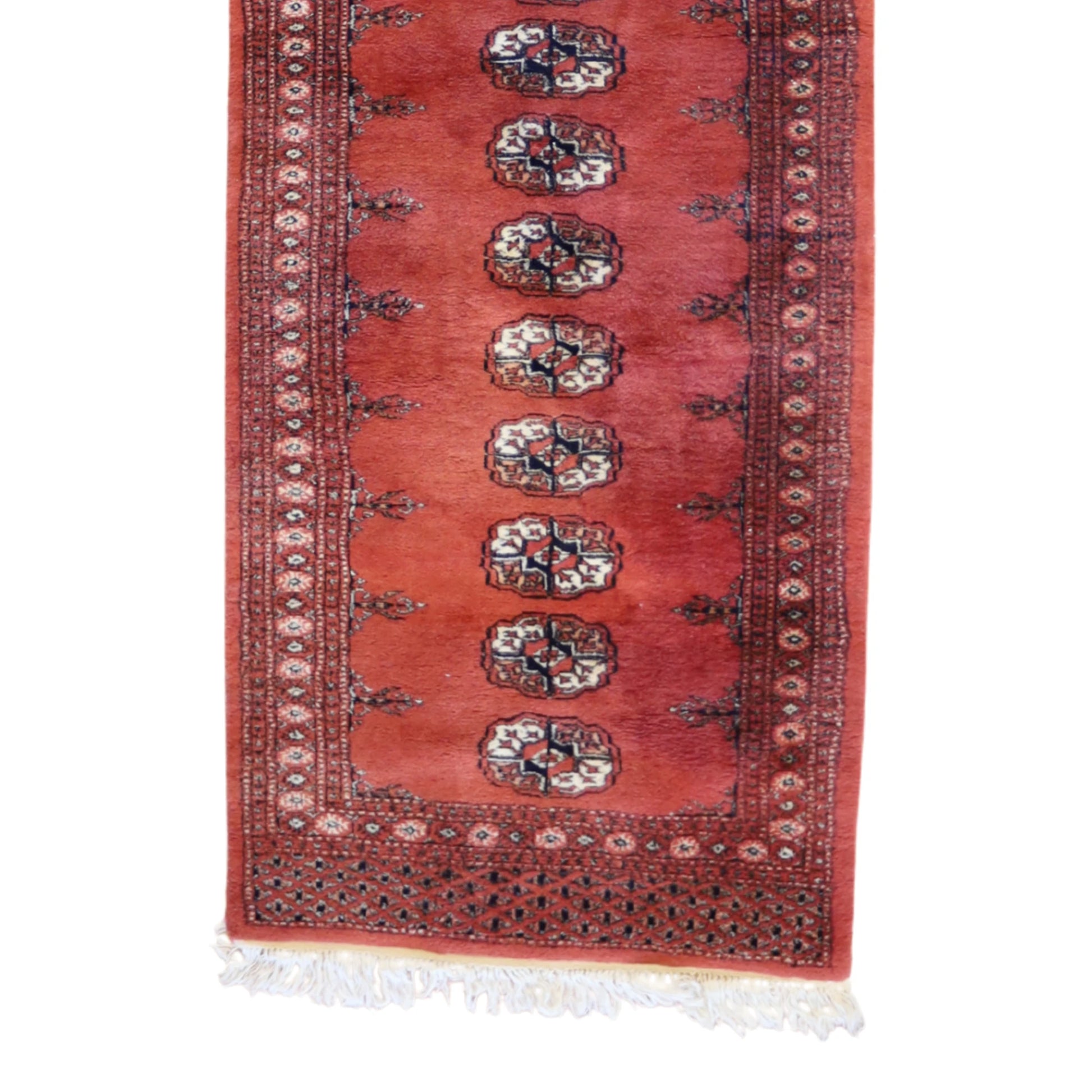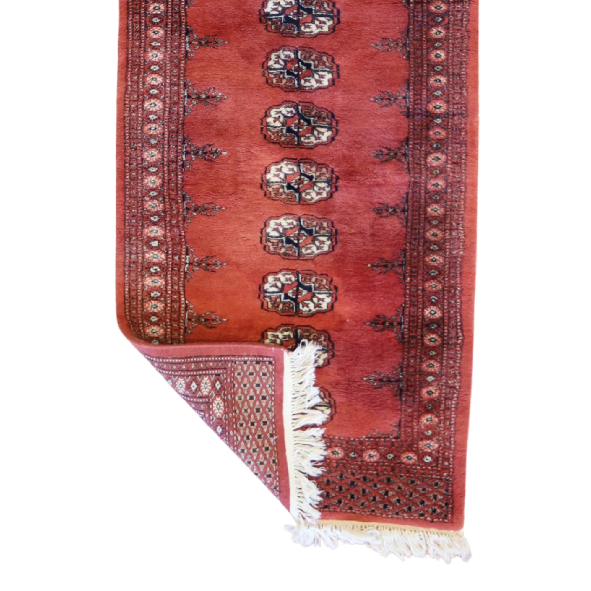 Bring style and flow to your space with this handcrafted PAKISTANI BOKARA runner rug, designed in a classic GEOMETRIC style. Measuring approximately 2' x 2 ft, it's the perfect fit for hallways, entryways, kitchens, or alongside a bed.