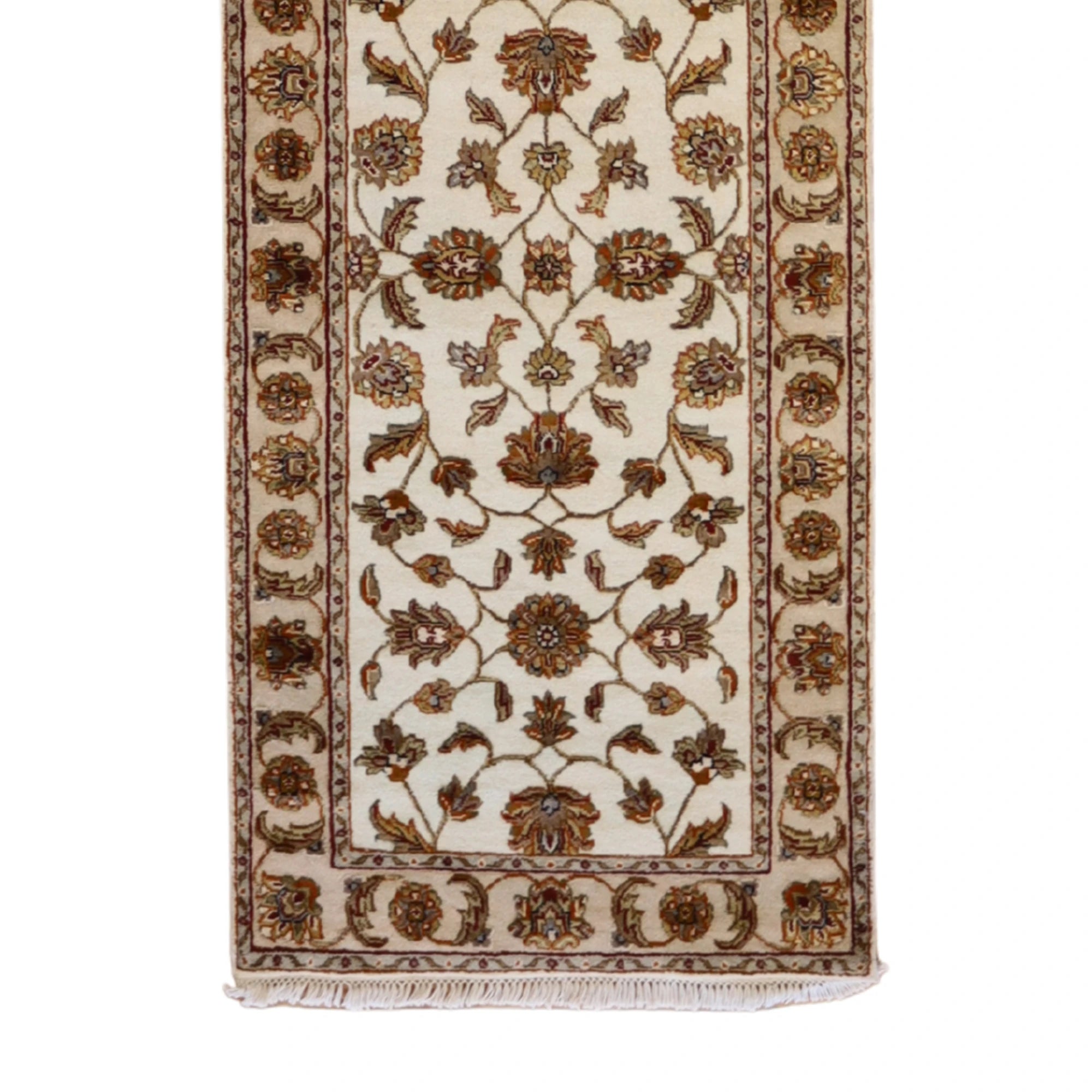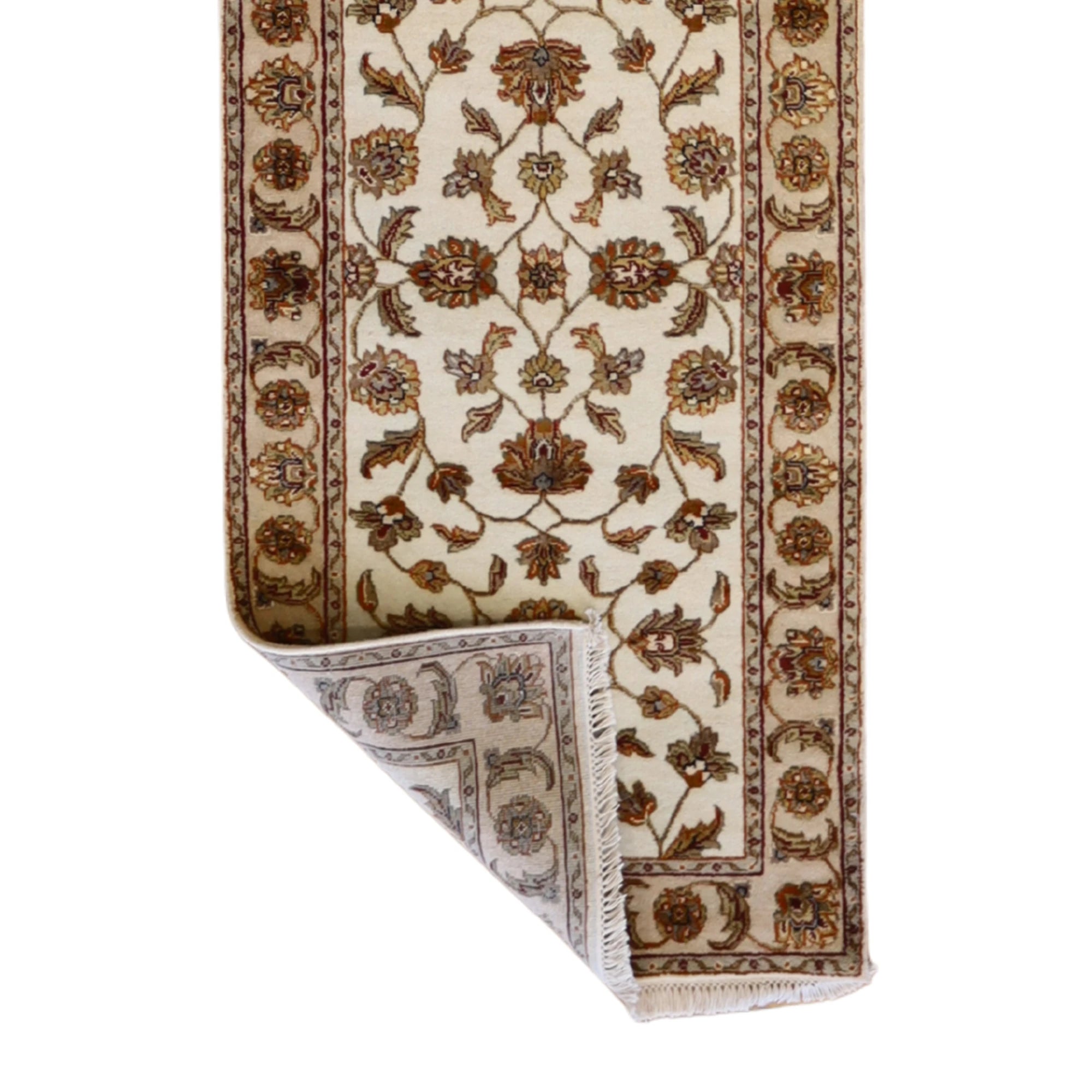 Bring style and flow to your space with this handcrafted INDIAN JAIPUR runner rug, designed in a classic FLORAL style. Measuring approximately 2' x 2 ft, it's the perfect fit for hallways, entryways, kitchens, or alongside a bed.