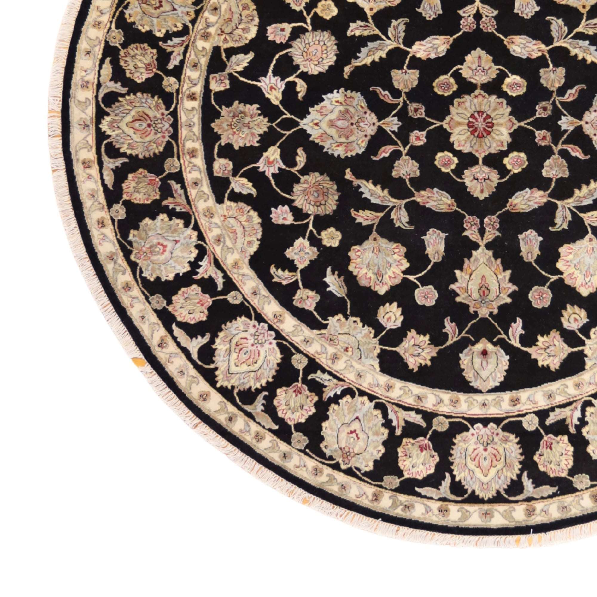 Add softness and style to your space with this handcrafted round INDIAN JAIPUR rug, designed in a timeless FLORAL look. Measuring approximately 8' x 8 ft, it's perfect for under coffee tables, in reading nooks, entryways, or anywhere you want a cozy focal point.
