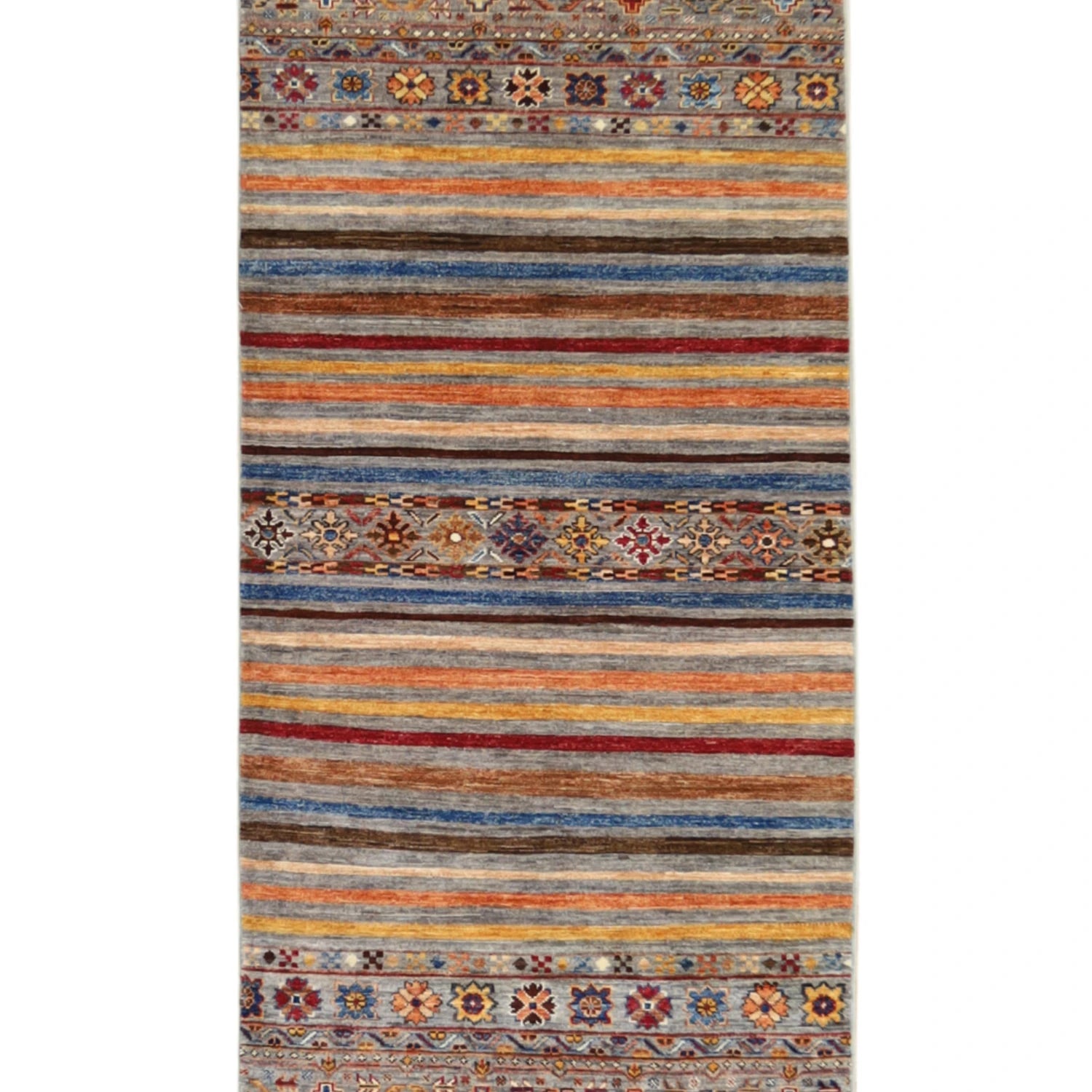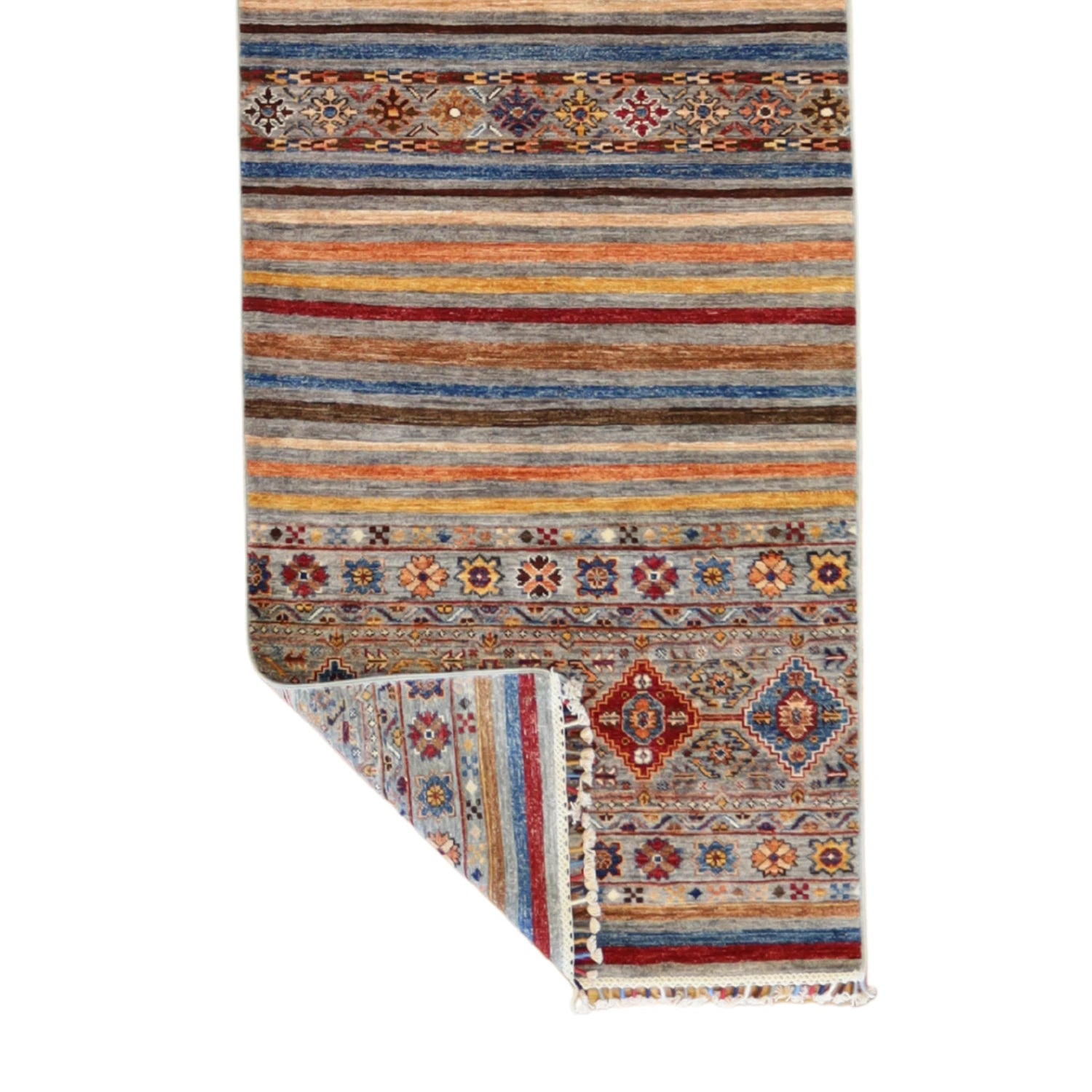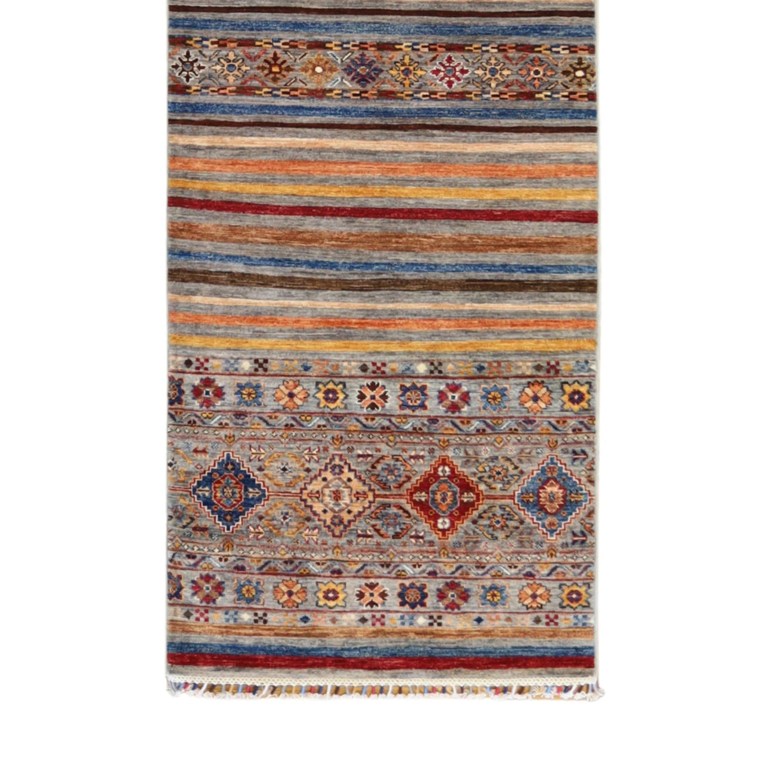Bring style and flow to your space with this handcrafted PAKISTANI KHORJIN runner rug, designed in a classic GEOMETRIC style. Measuring approximately 2' x 2 ft, it's the perfect fit for hallways, entryways, kitchens, or alongside a bed.