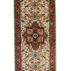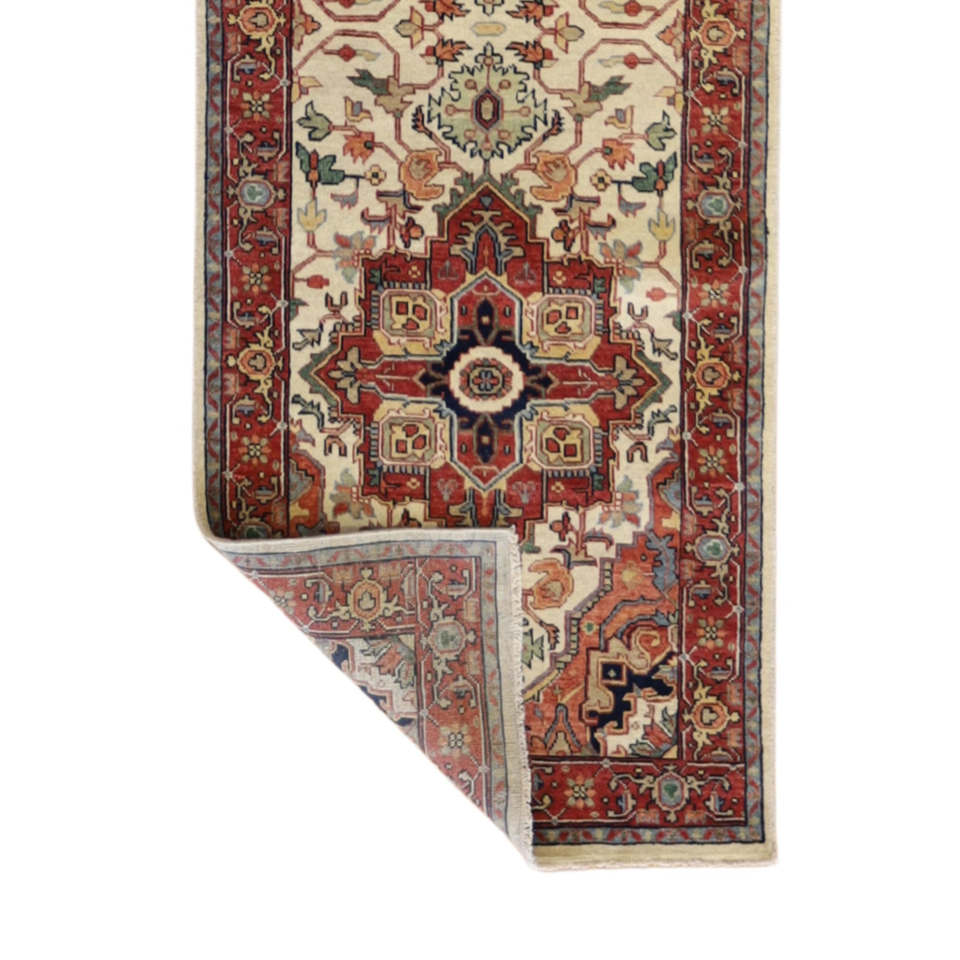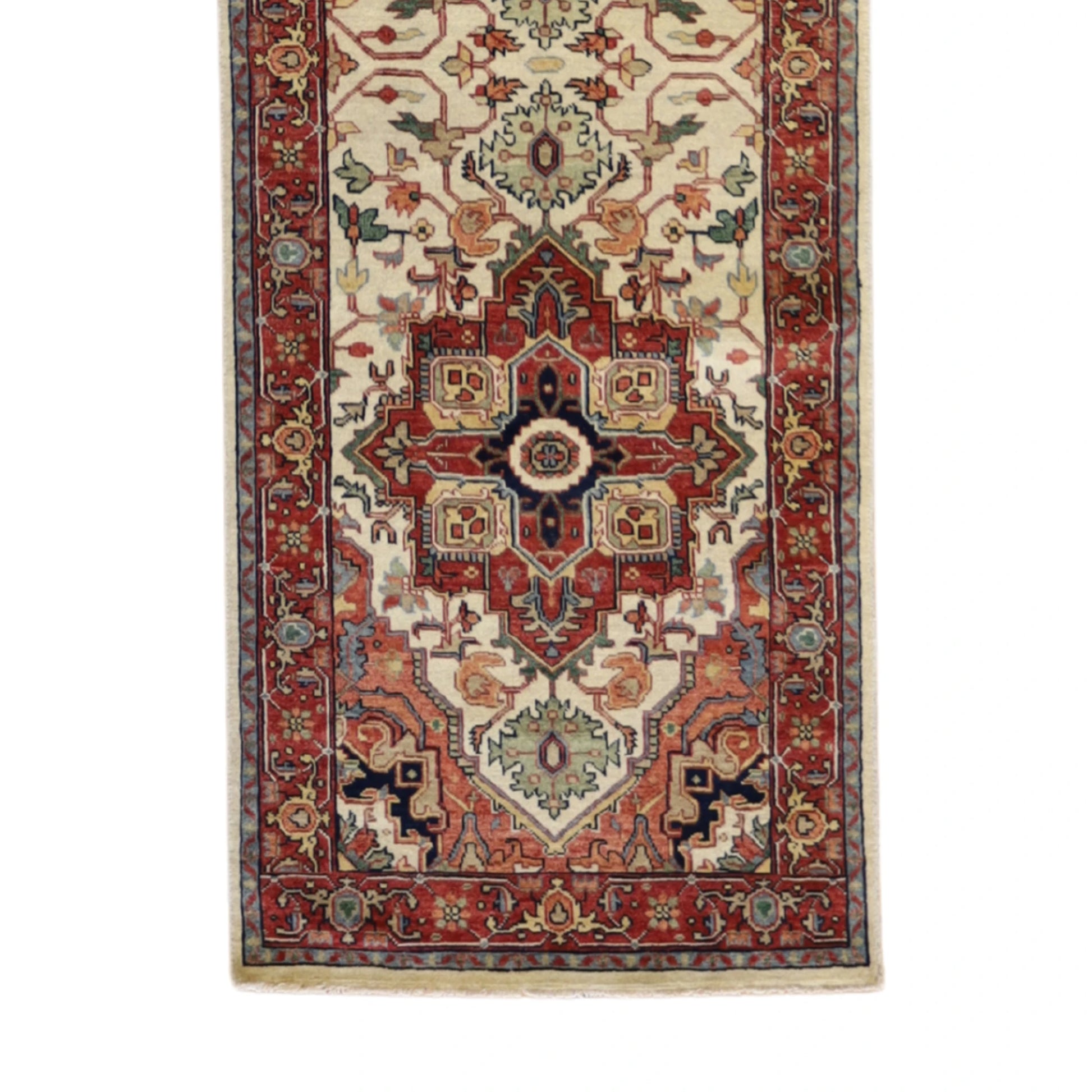 Bring style and flow to your space with this handcrafted INDIAN SERAPI runner rug, designed in a classic GEOMETRIC style. Measuring approximately 2' x 2 ft, it's the perfect fit for hallways, entryways, kitchens, or alongside a bed.