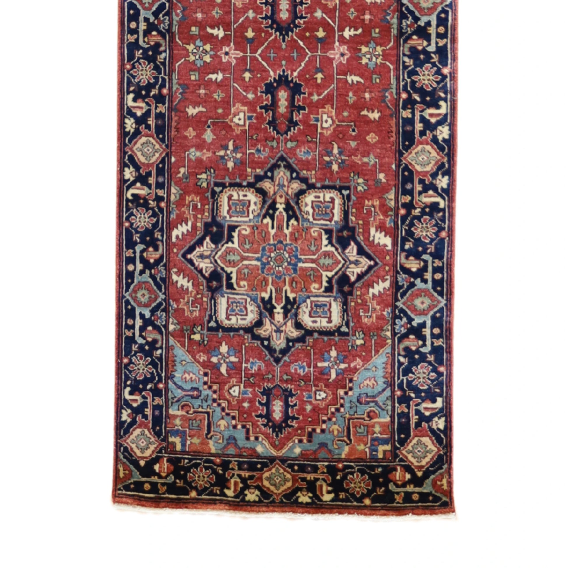 Bring style and flow to your space with this handcrafted INDIAN SERAPI runner rug, designed in a classic GEOMETRIC style. Measuring approximately 2' x 2 ft, it's the perfect fit for hallways, entryways, kitchens, or alongside a bed.