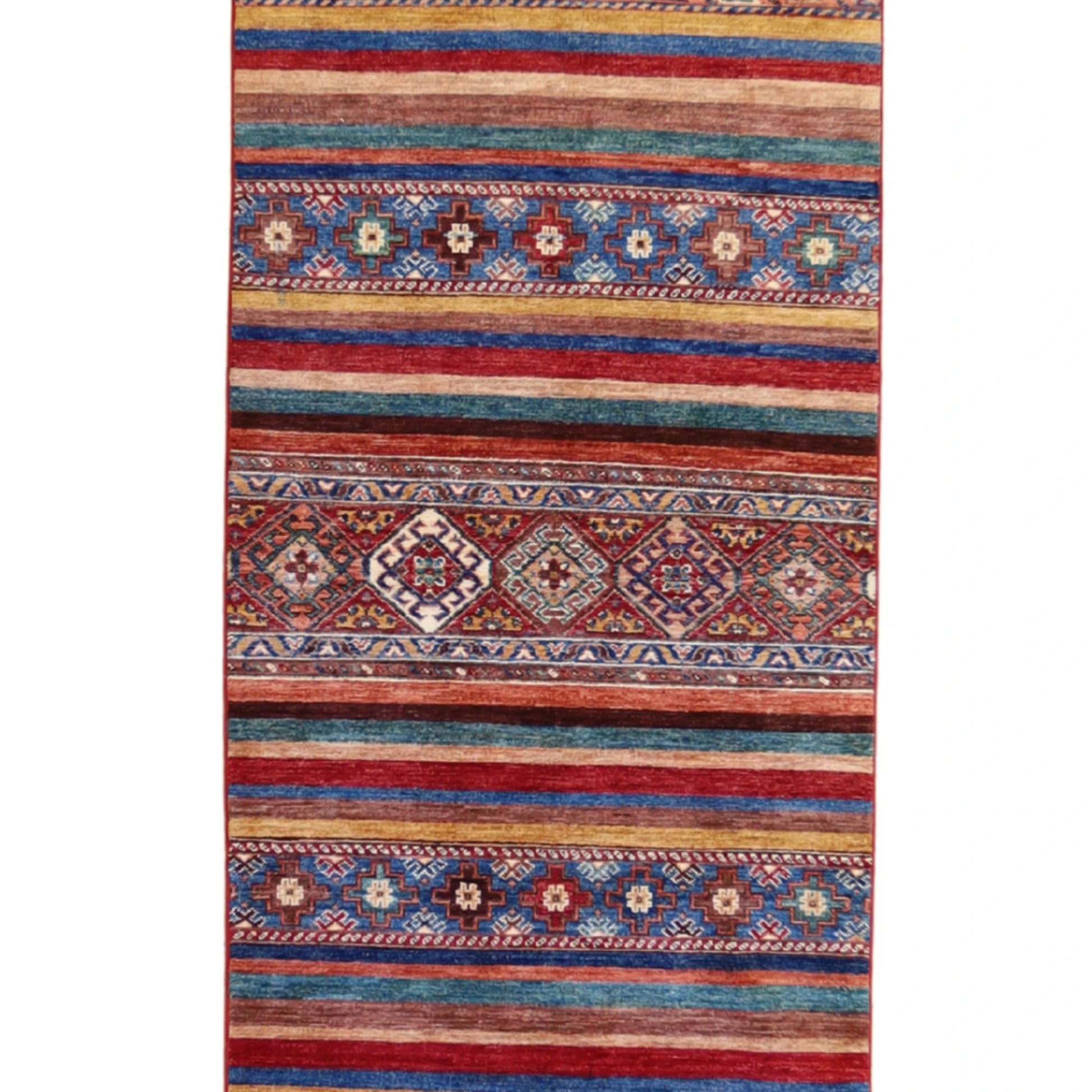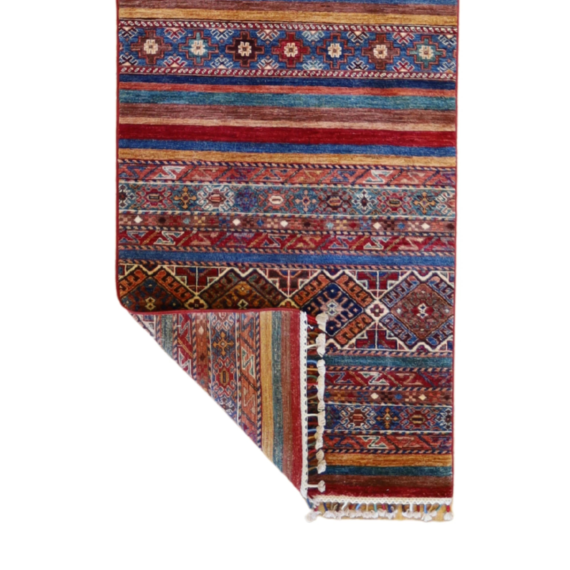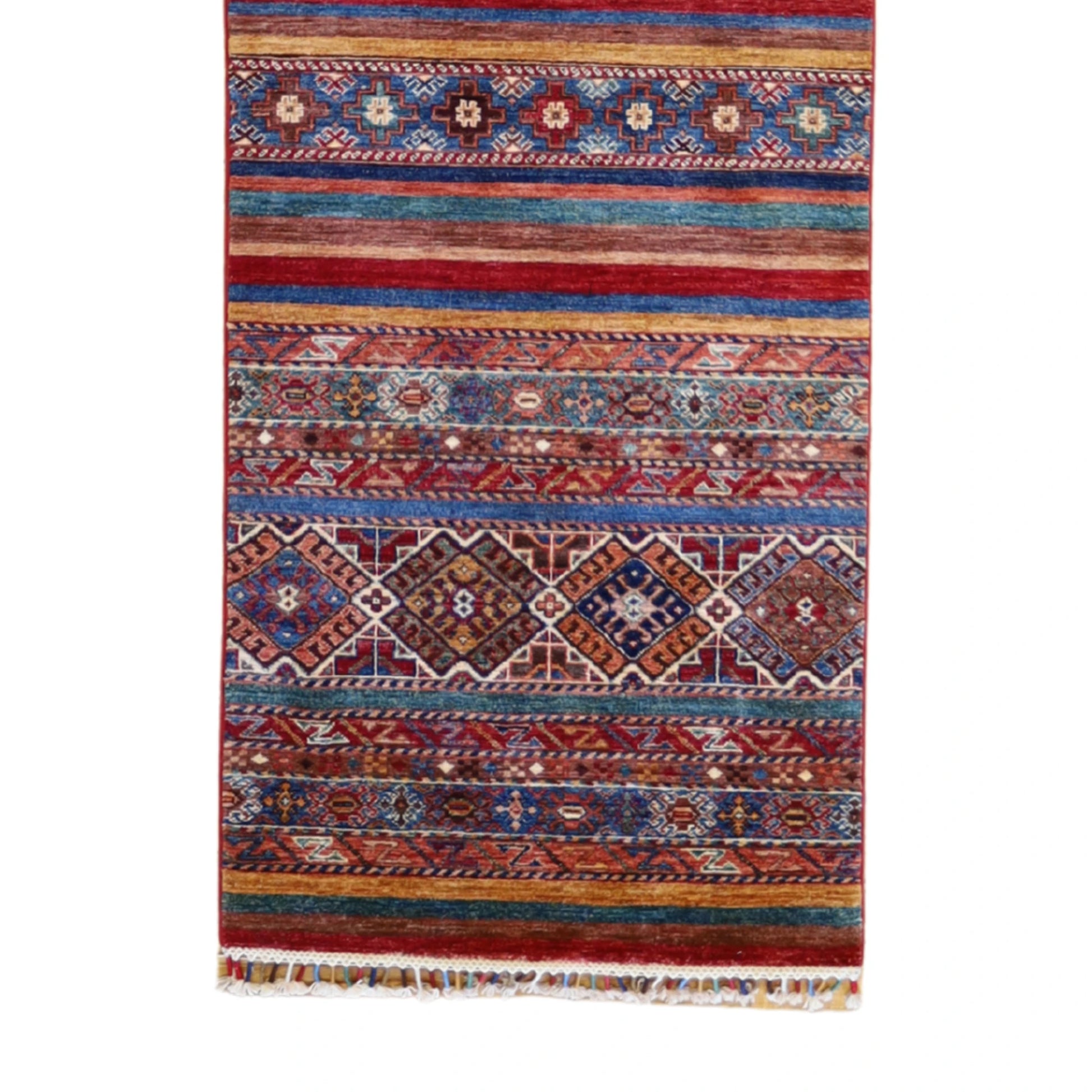 Bring style and flow to your space with this handcrafted PAKISTANI KHORJIN runner rug, designed in a classic GEOMETRIC style. Measuring approximately 2' x 2 ft, it's the perfect fit for hallways, entryways, kitchens, or alongside a bed.