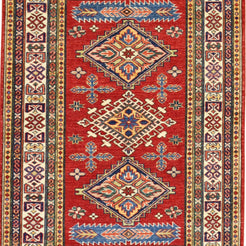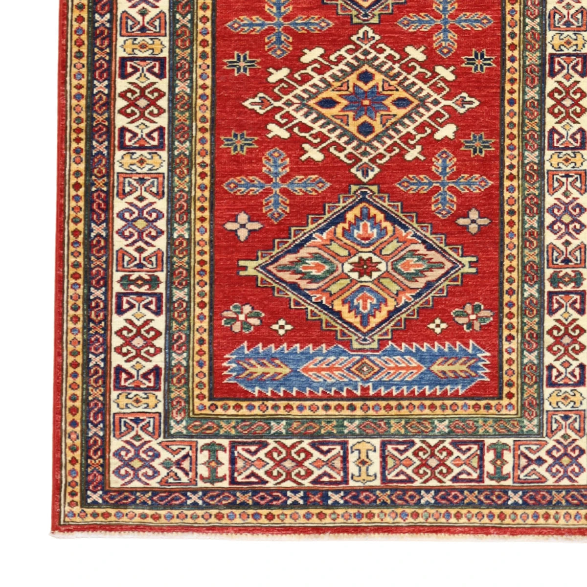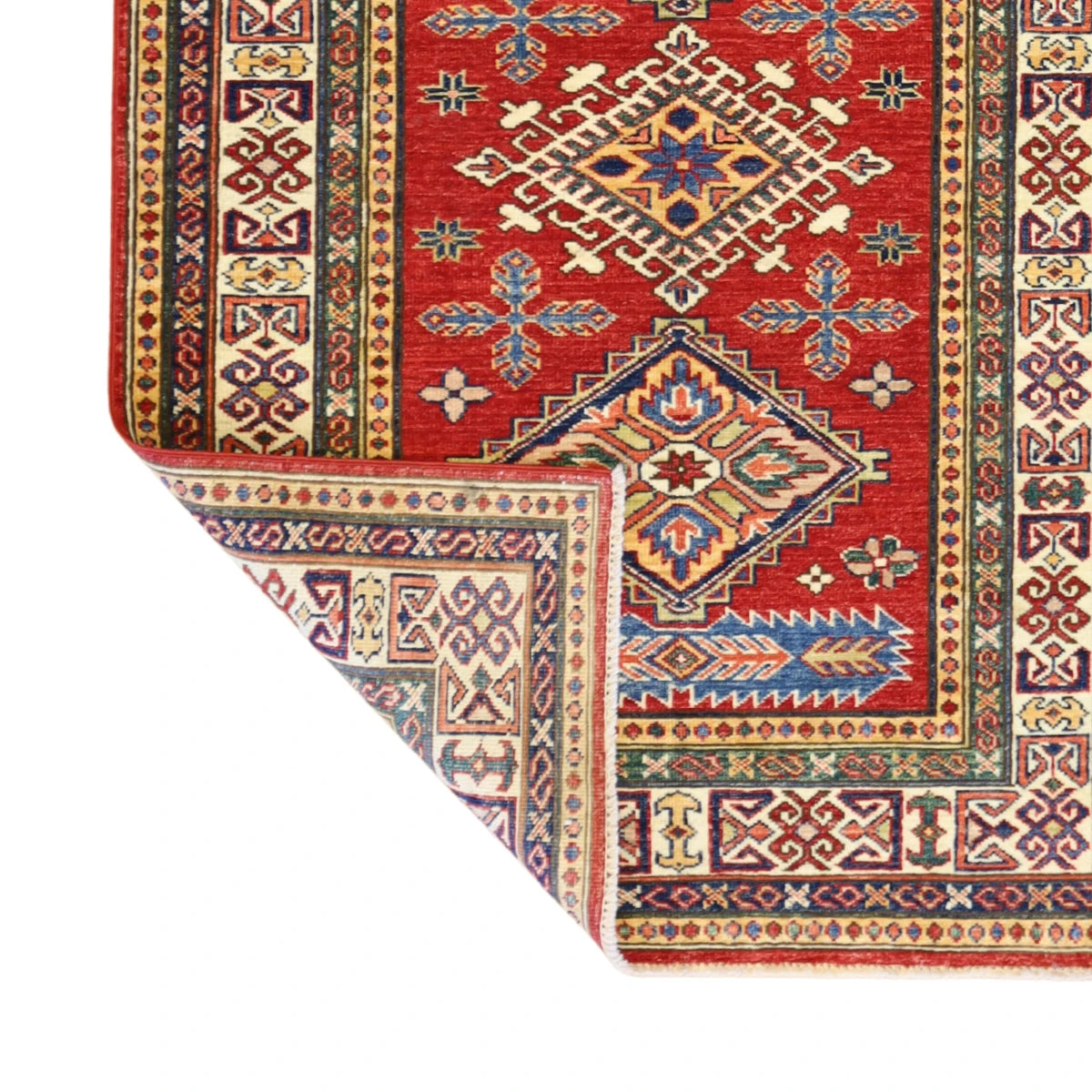 Perfectly sized for accent spaces, this handcrafted PAKISTANI KAZAK rug brings timeless GEOMETRIC style into your home. Measuring approximately 3' x 3 ft, it's ideal for use in entryways, kitchens, offices, or layered in larger rooms.