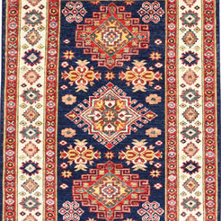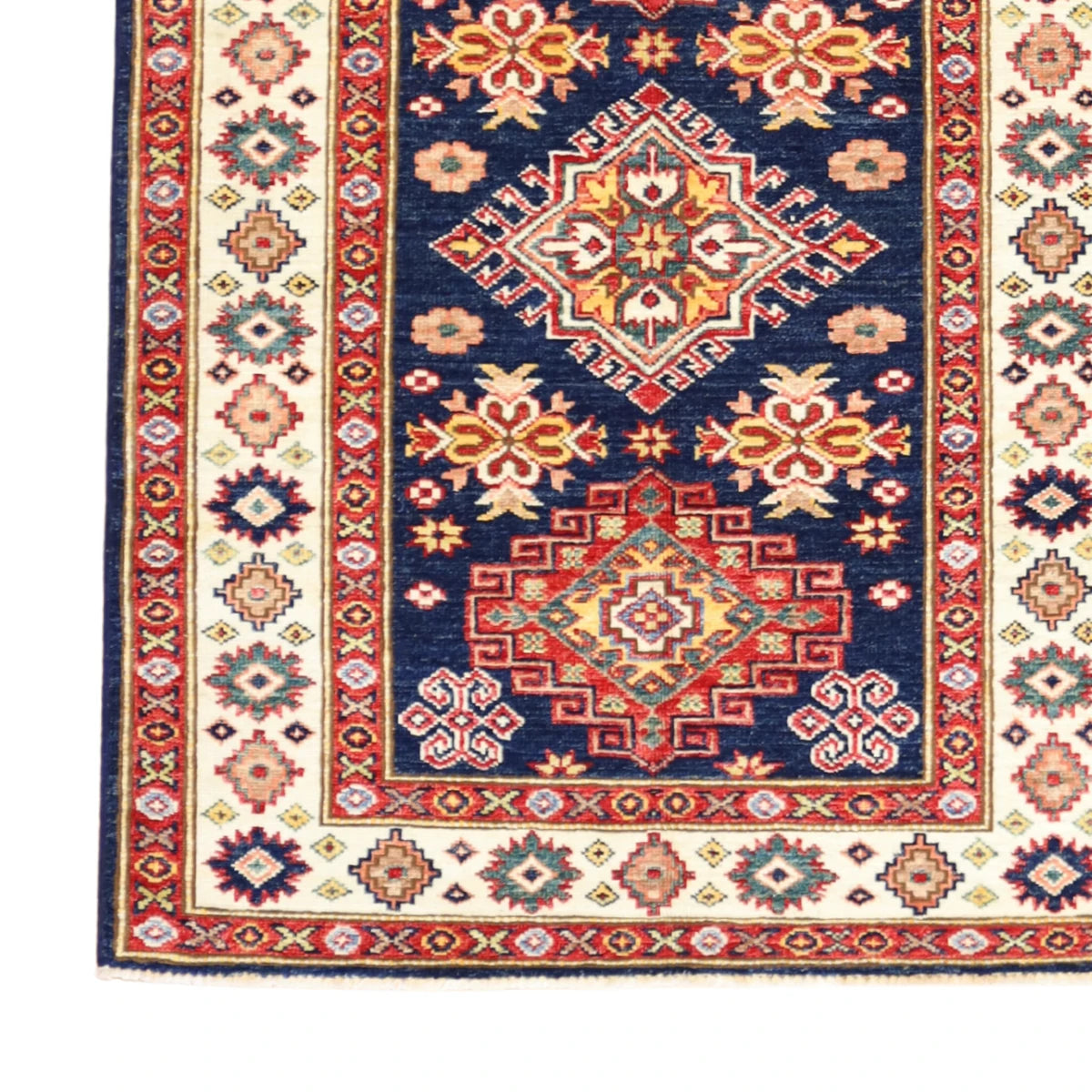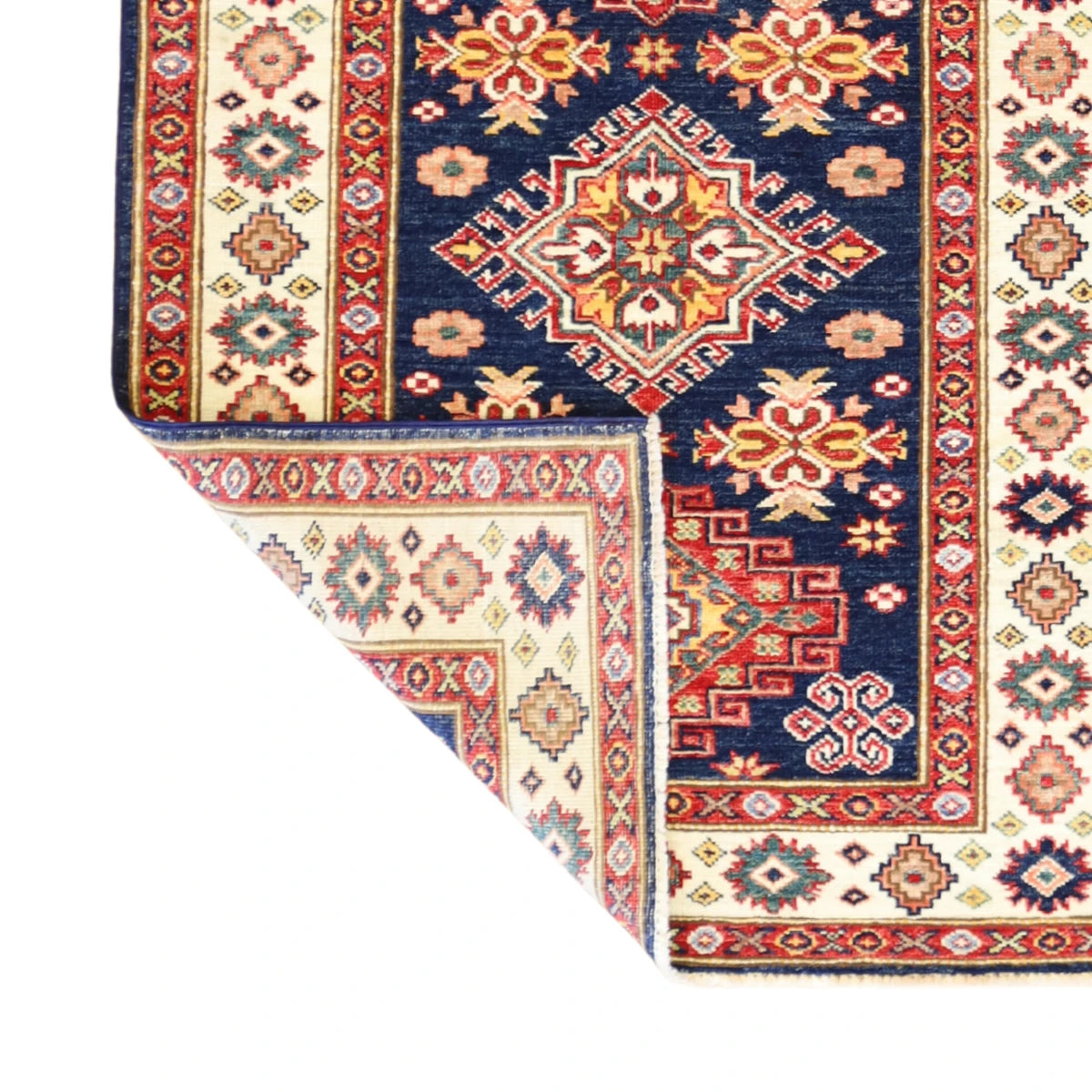 Perfectly sized for accent spaces, this handcrafted PAKISTANI KAZAK rug brings timeless GEOMETRIC style into your home. Measuring approximately 3' x 3 ft, it's ideal for use in entryways, kitchens, offices, or layered in larger rooms.