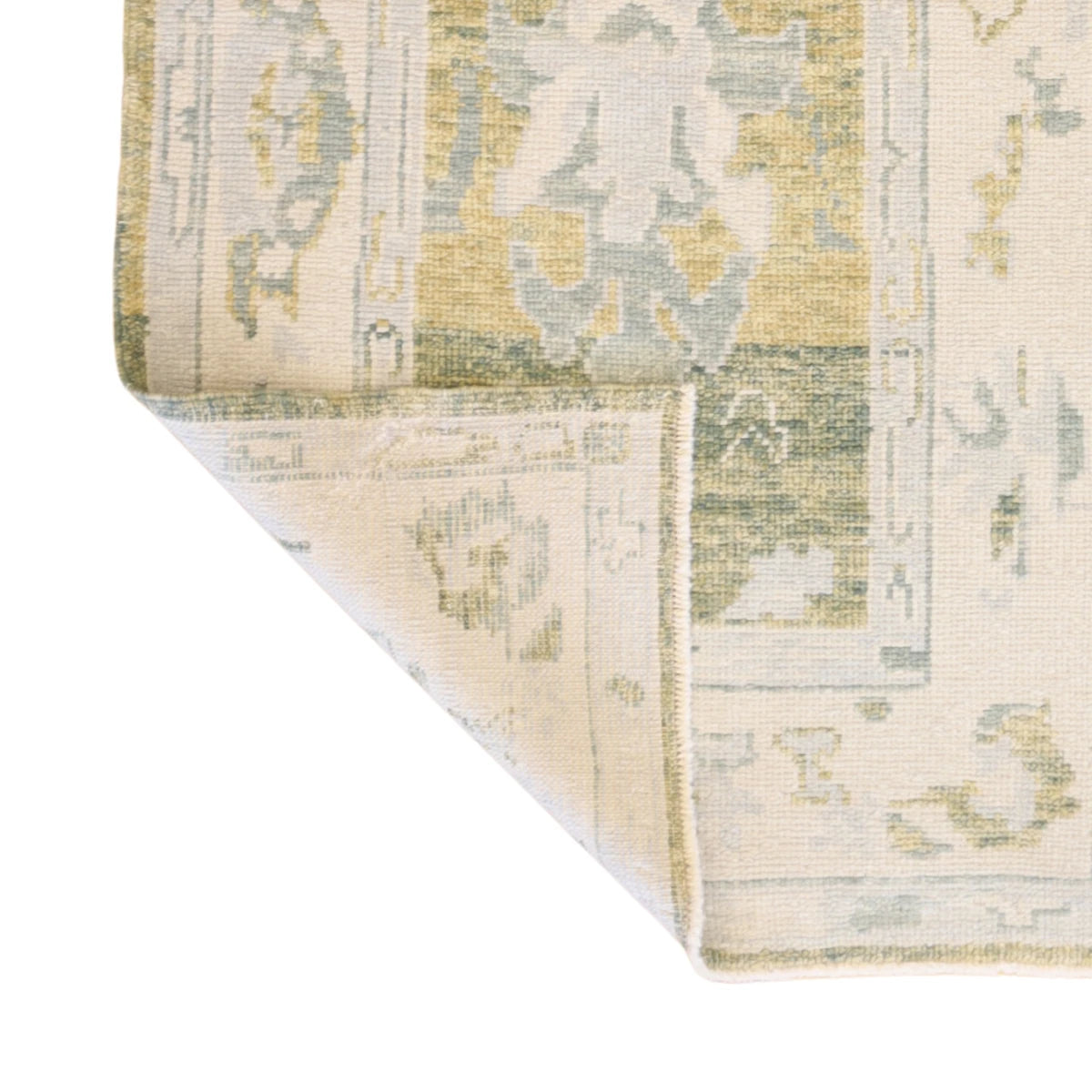 Made from premium WOOL, it offers a blend of lasting durability and a soft, comfortable feel. The deep GREEN base is elegantly framed with a IVORY border, creating a balanced and stylish look.