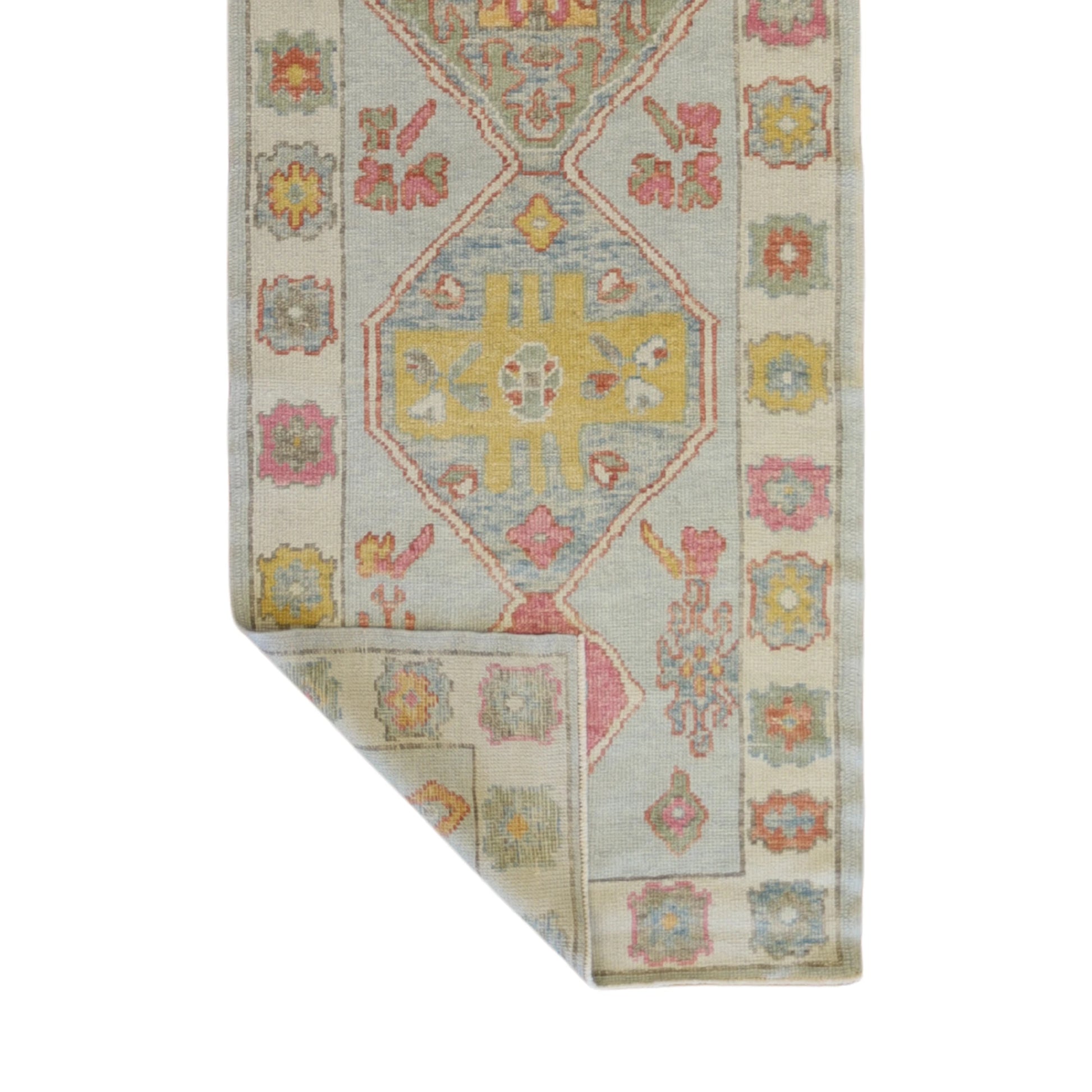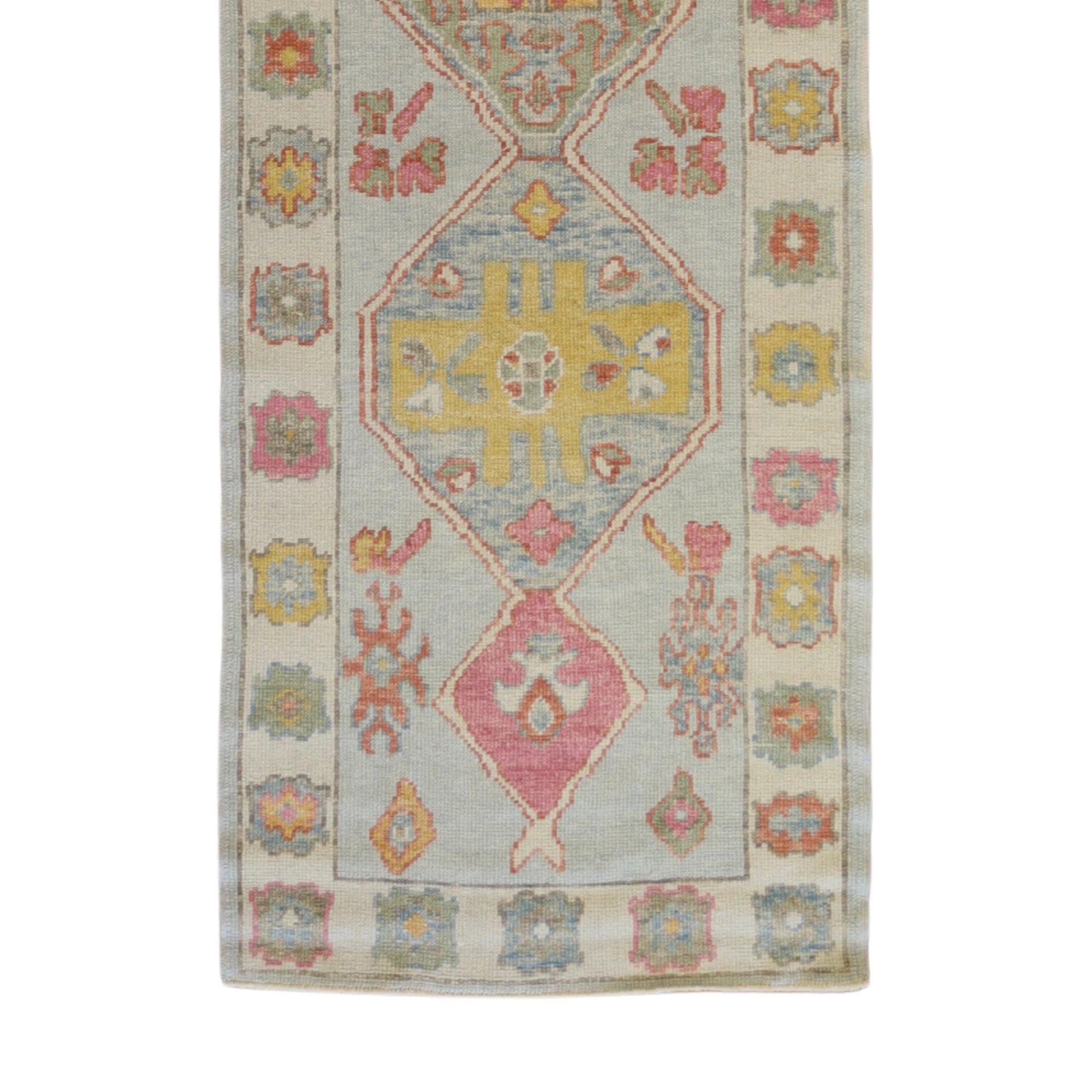 Bring style and flow to your space with this handcrafted TURKISH OUSHAK runner rug, designed in a classic GEOMETRIC style. Measuring approximately 3' x 3 ft, it's the perfect fit for hallways, entryways, kitchens, or alongside a bed.