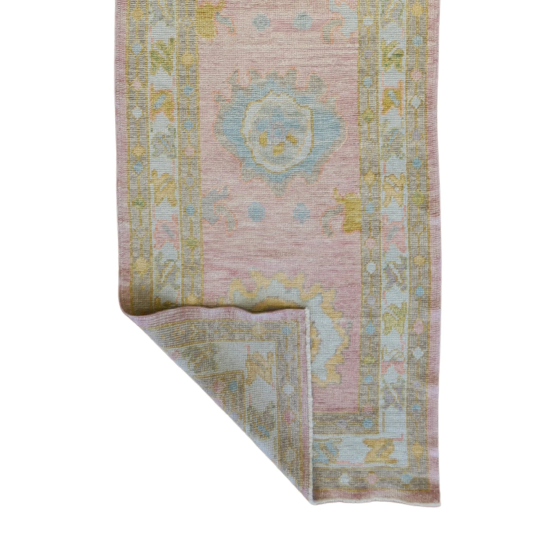 Bring style and flow to your space with this handcrafted TURKISH OUSHAK runner rug, designed in a classic GEOMETRIC style. Measuring approximately 3' x 3 ft, it's the perfect fit for hallways, entryways, kitchens, or alongside a bed.