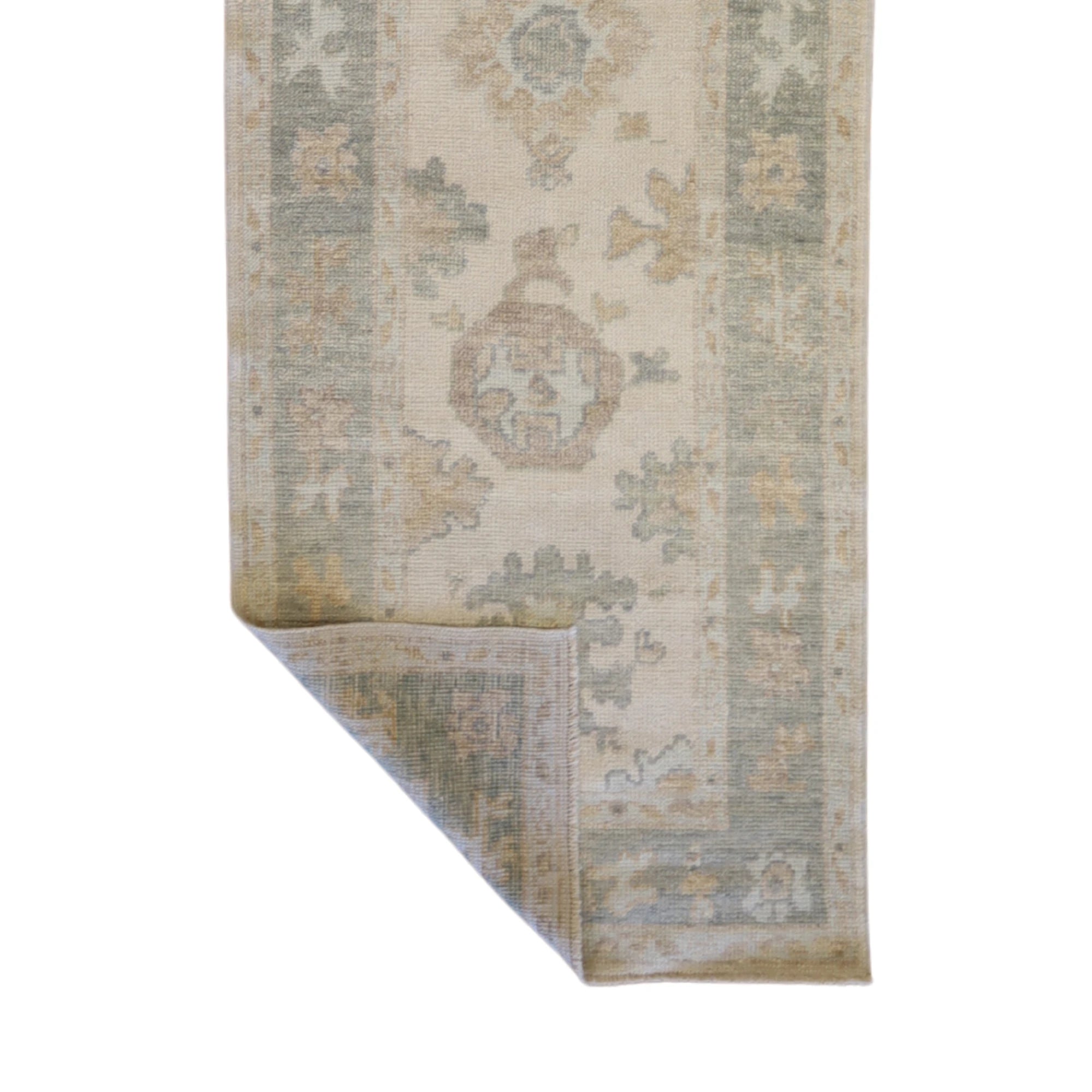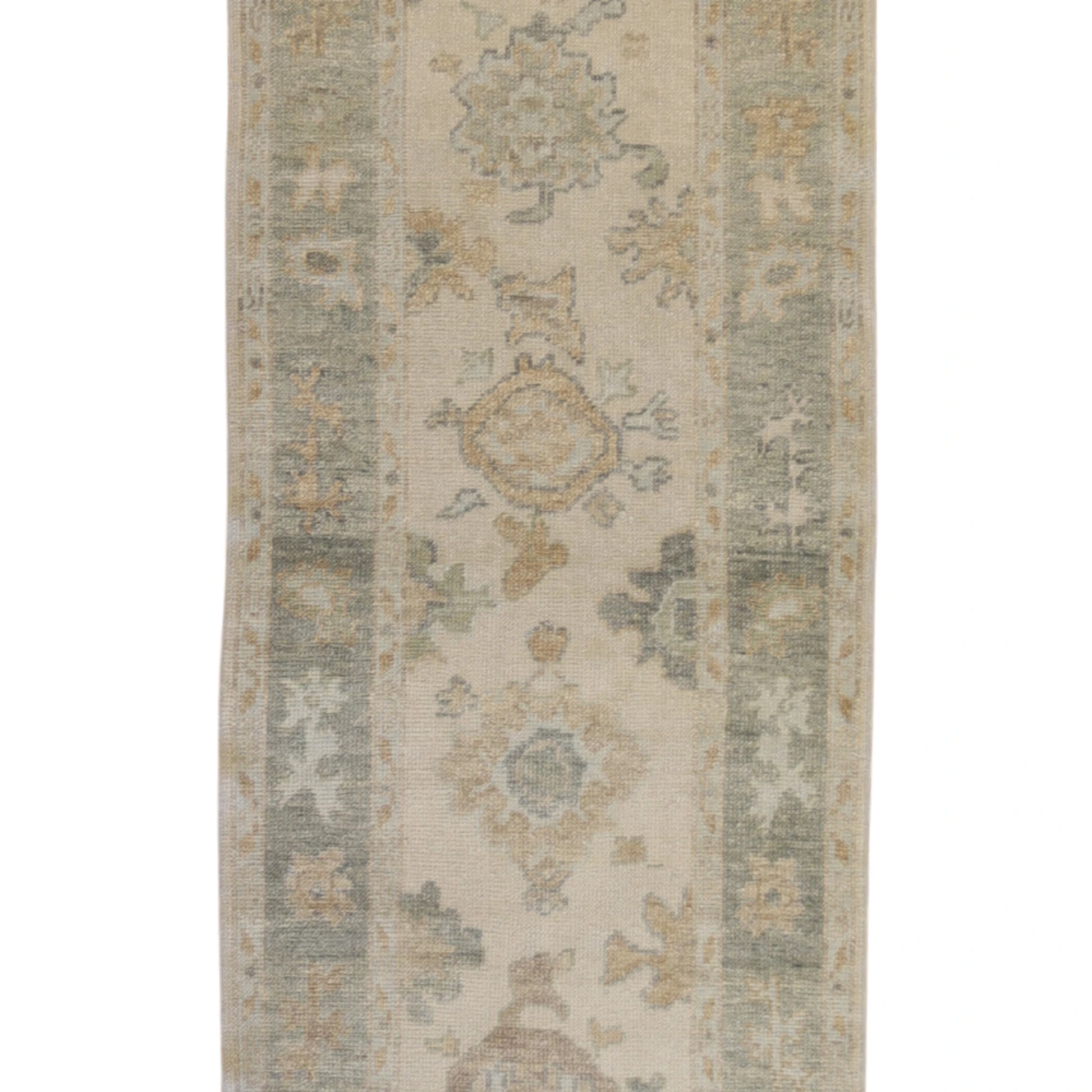 Made from high-quality WOOL, this runner is both durable and soft underfoot. The elegant IVORY base color paired with a refined GREEN border adds warmth and movement to your interior.
