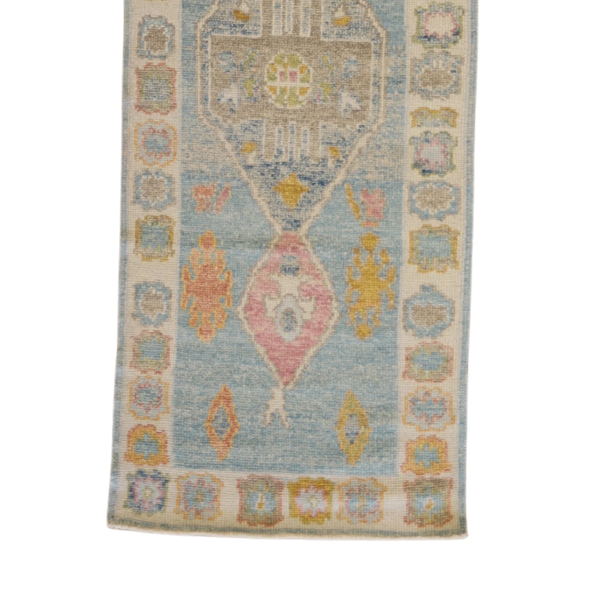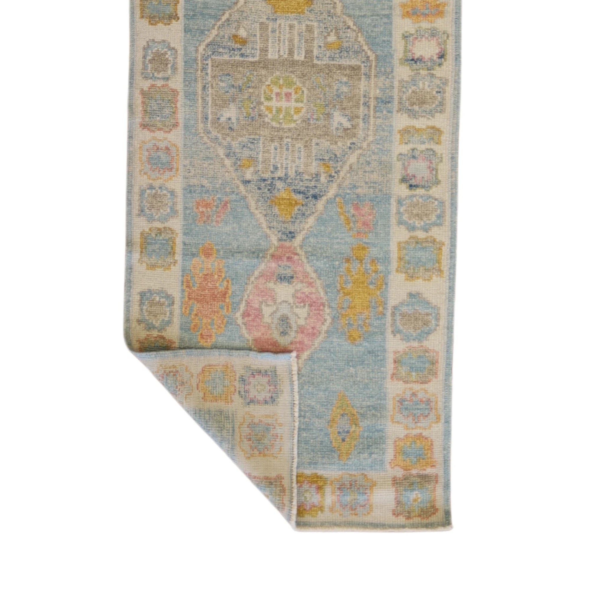 Bring style and flow to your space with this handcrafted TURKISH OUSHAK runner rug, designed in a classic GEOMETRIC style. Measuring approximately 2' x 2 ft, it's the perfect fit for hallways, entryways, kitchens, or alongside a bed.