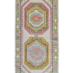 Bring style and flow to your space with this handcrafted TURKISH OUSHAK runner rug, designed in a classic GEOMETRIC style. Measuring approximately 3' x 3 ft, it's the perfect fit for hallways, entryways, kitchens, or alongside a bed.