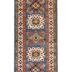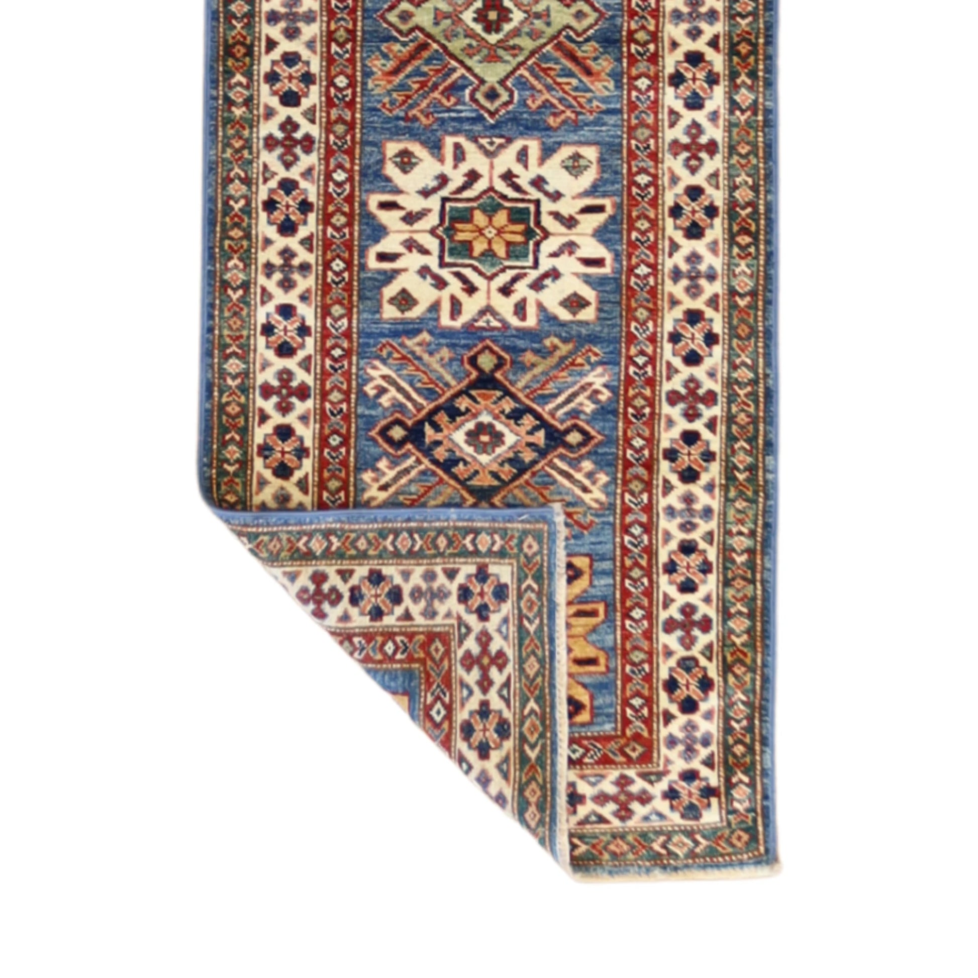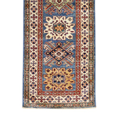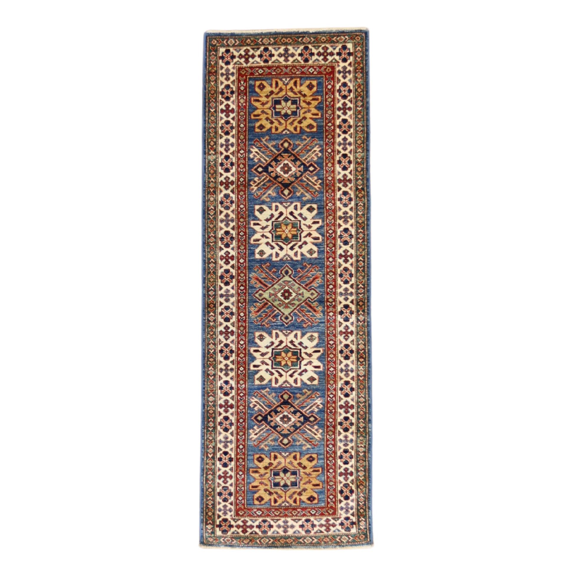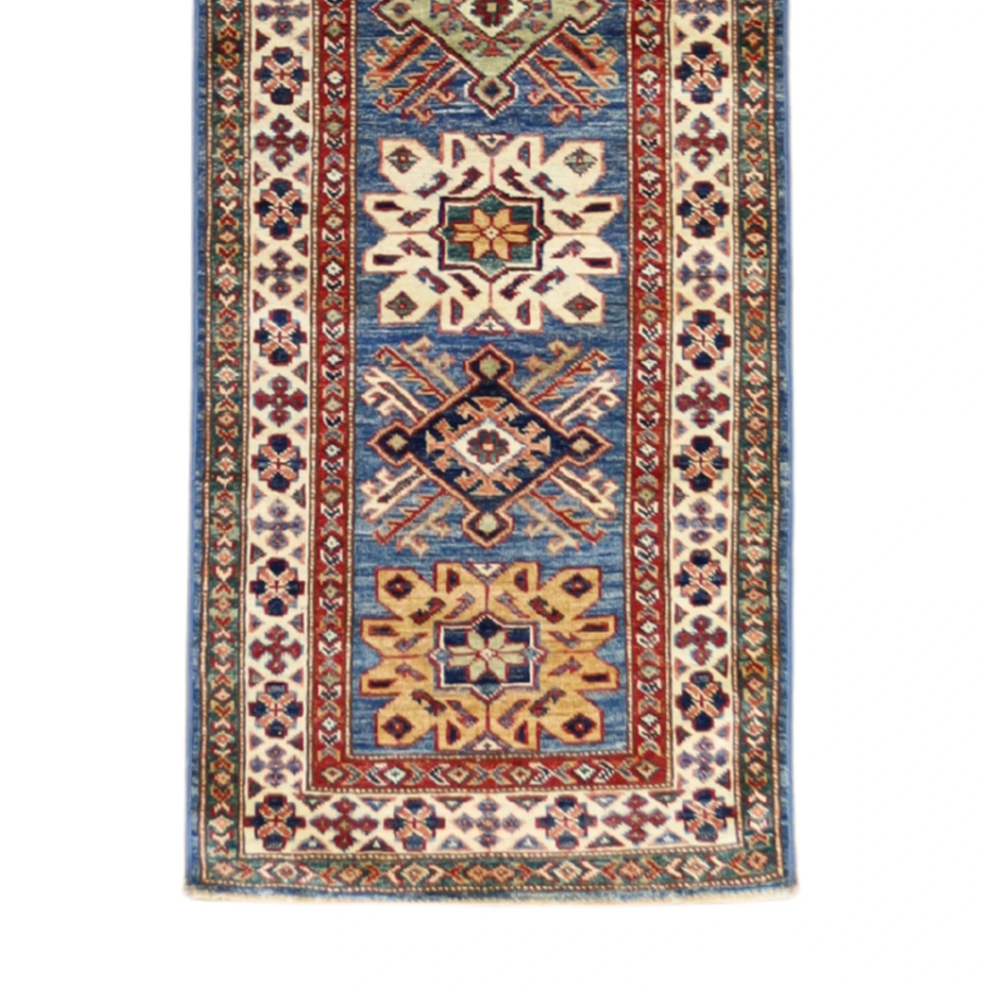 Bring style and flow to your space with this handcrafted PAKISTANI KAZAK runner rug, designed in a classic GEOMETRIC style. Measuring approximately 2' x 2 ft, it's the perfect fit for hallways, entryways, kitchens, or alongside a bed.