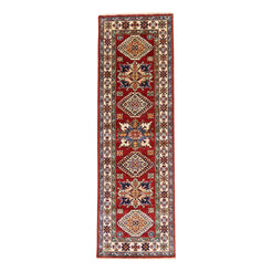 Bring style and flow to your space with this handcrafted PAKISTANI KAZAK runner rug, designed in a classic GEOMETRIC style. Measuring approximately 1' x 1 ft, it's the perfect fit for hallways, entryways, kitchens, or alongside a bed.