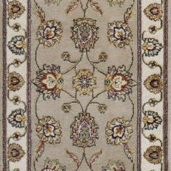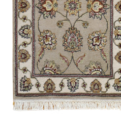 Made from premium SILK&WOOL, it offers a blend of lasting durability and a soft, comfortable feel. The deep GRAY base is elegantly framed with a IVORY border, creating a balanced and stylish look.