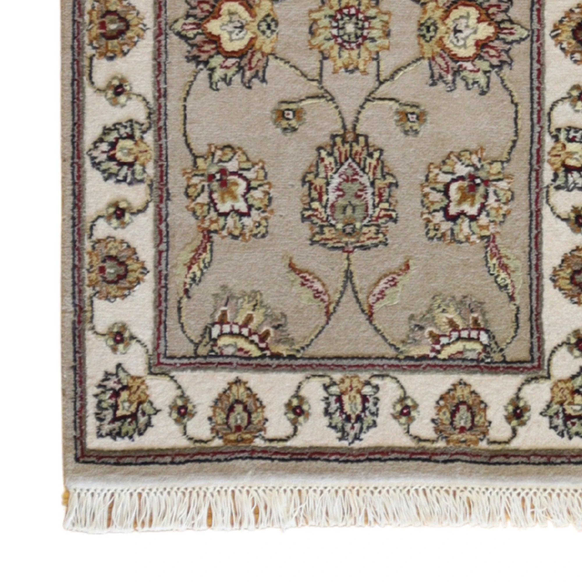 Perfectly sized for small accent areas, this handcrafted INDIAN JAIPUR rug brings timeless FLORAL style into your home. Measuring approximately 2' x 2 ft, it's ideal for use in entryways, beside the bed, in bathrooms, or under small tables.
