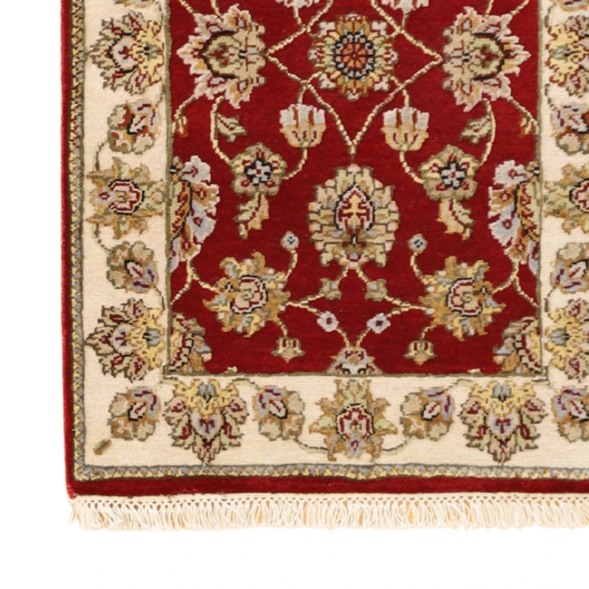 Perfectly sized for small accent areas, this handcrafted INDIAN JAIPUR rug brings timeless FLORAL style into your home. Measuring approximately 2' x 2 ft, it's ideal for use in entryways, beside the bed, in bathrooms, or under small tables.