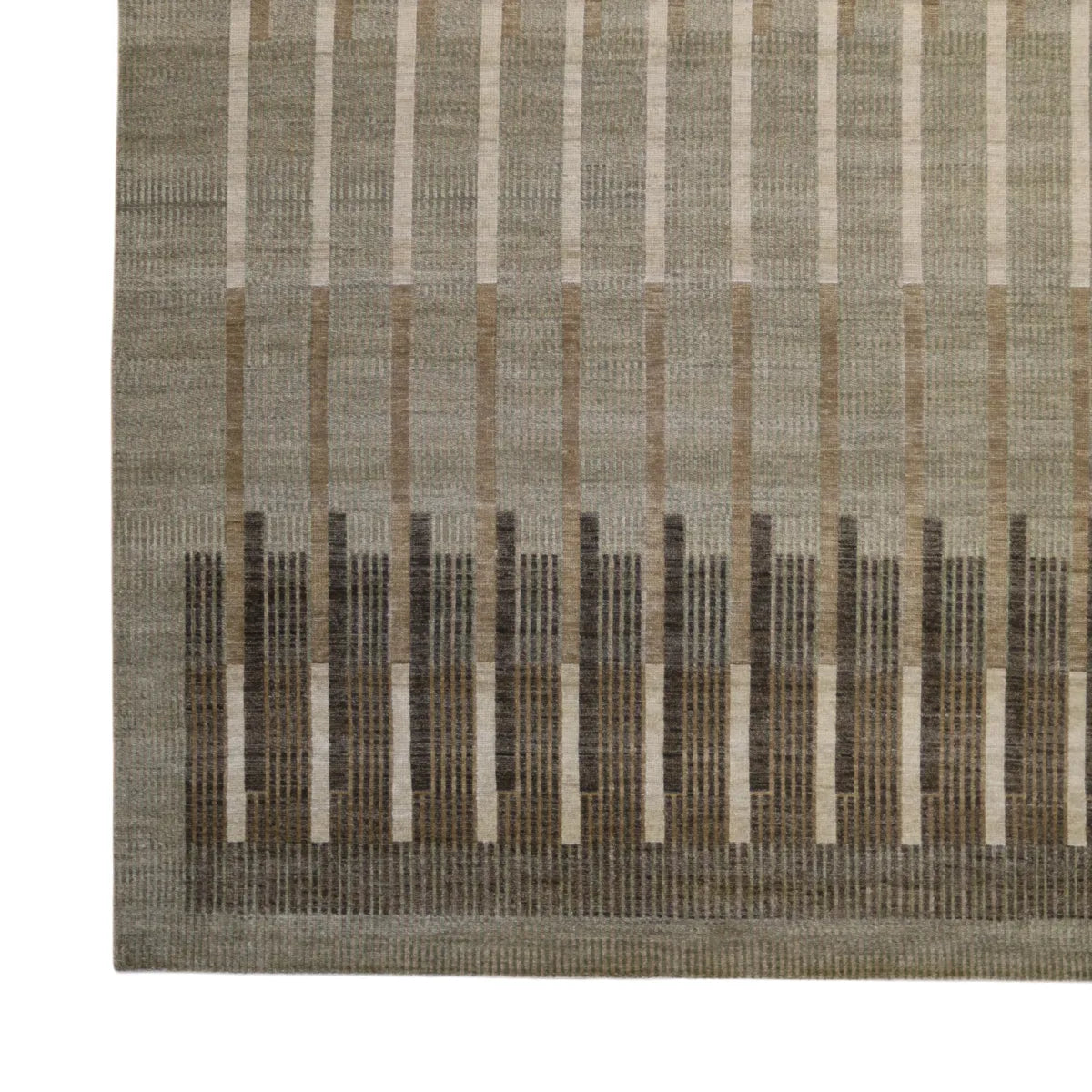 Elevate Your Space with MODERN Elegance. This beautiful MODERN rug, crafted in a sleek modern design, blends contemporary style with timeless comfort. The refined look on the GRAY base creates a clean and sophisticated atmosphere, while the contrasting GREEN border adds a subtle touch of character. Perfect for living rooms, bedrooms, or offices, this modern rug complements a wide range of interiors with its understated beauty. Sourced from INDIA, this handmade piece promises exceptional craftsmanship and lasting quality. Measuring 7' 11" x 10' 1", it���s designed to transform your space with elegance and ease.