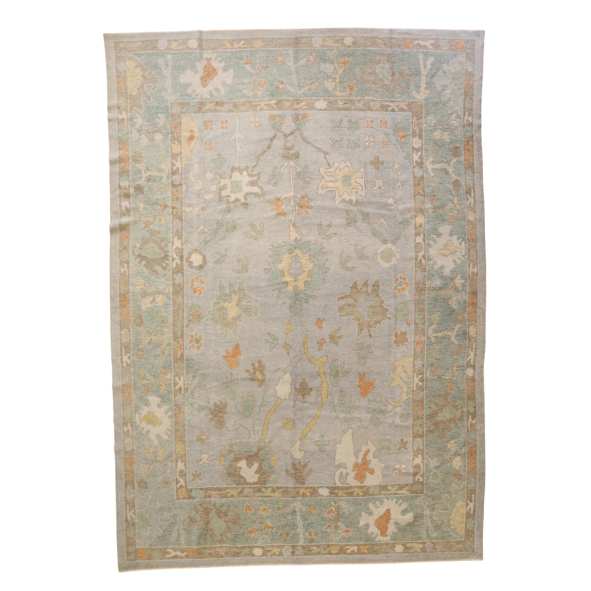 Carefully handcrafted, this elegant TURKISH OUSHAK rug reflects timeless GEOMETRIC style. Measuring approximately 9' x 9 ft, it's a versatile piece that works beautifully in various spaces—whether placed in living rooms, bedrooms, hallways, or entryways.