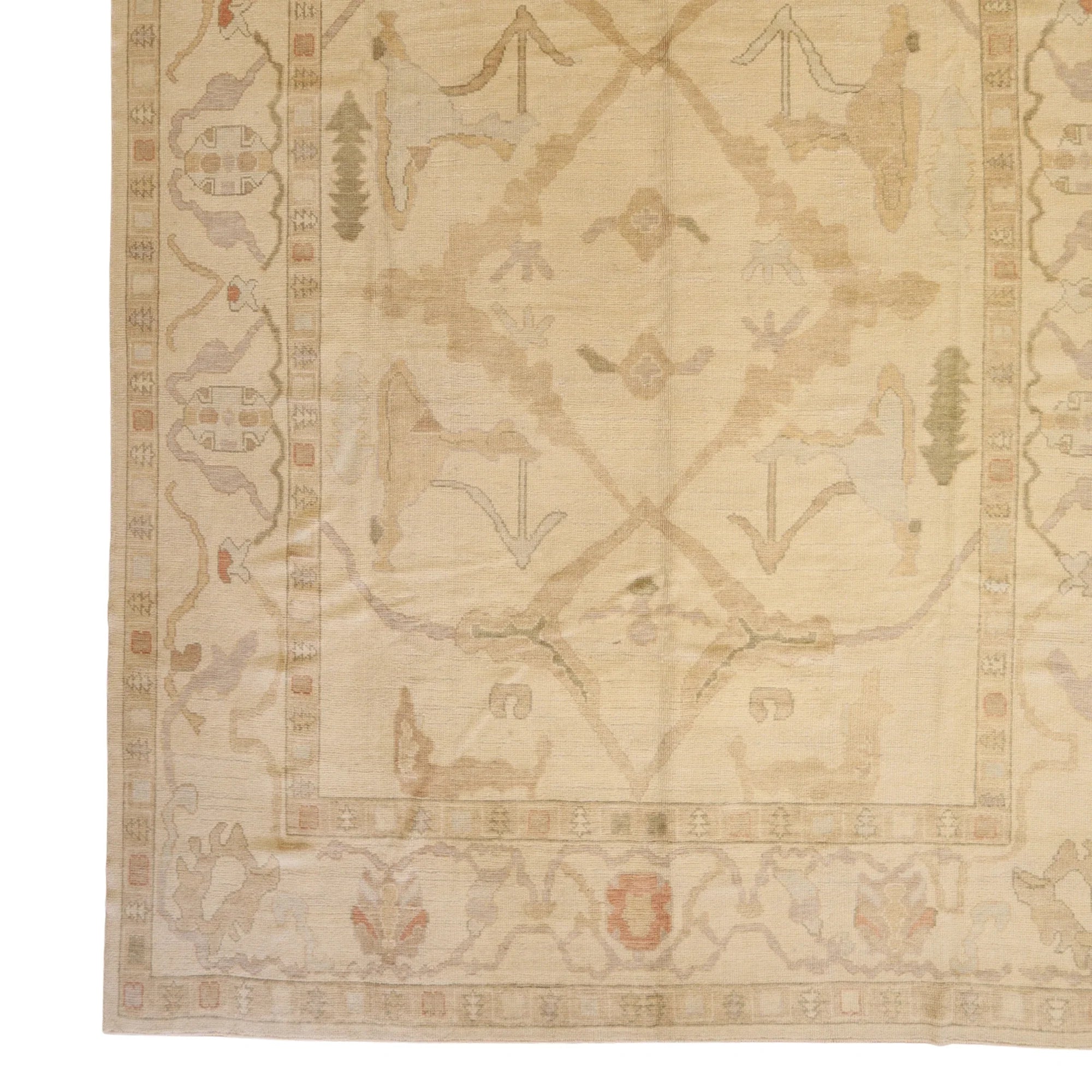 Carefully handcrafted, this elegant TURKISH OUSHAK rug reflects timeless GEOMETRIC style. Measuring approximately 10' x 10 ft, it's a versatile piece that works beautifully in various spaces—whether placed in living rooms, bedrooms, hallways, or entryways.