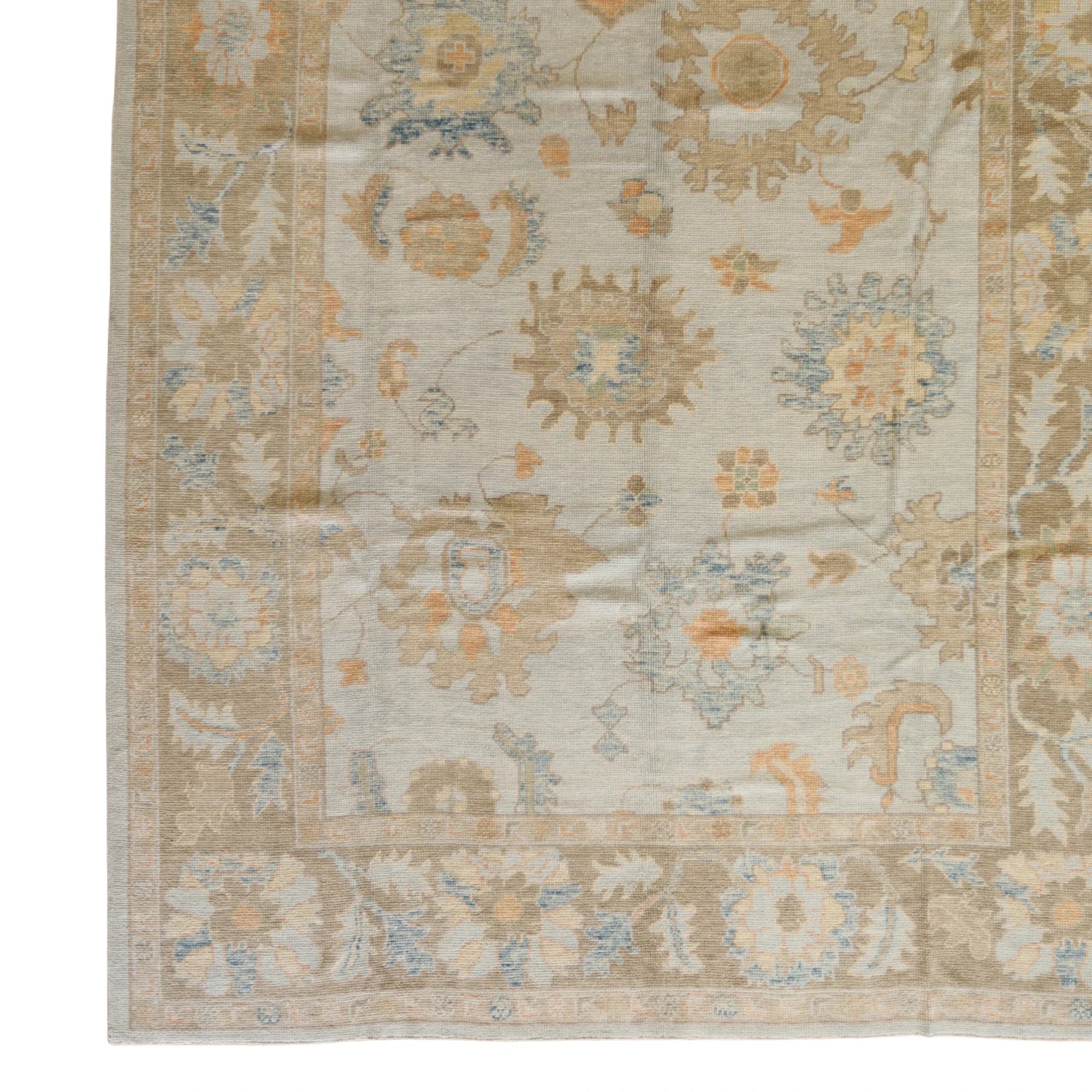 Carefully handcrafted, this elegant TURKISH OUSHAK rug reflects timeless GEOMETRIC style. Measuring approximately 8' x 8 ft, it's a versatile piece that works beautifully in various spaces—whether placed in living rooms, bedrooms, hallways, or entryways.