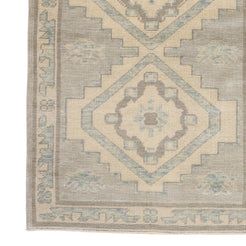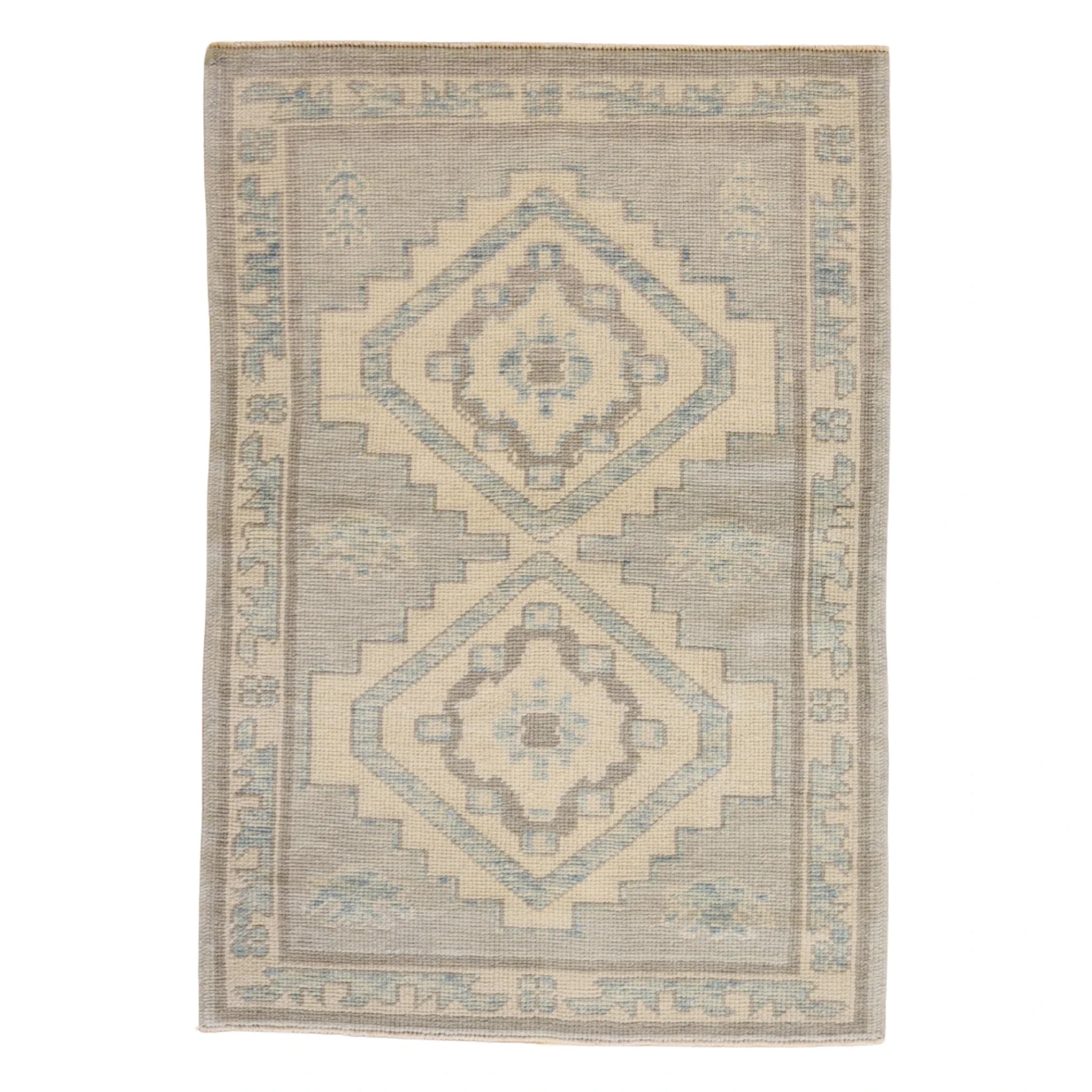 Carefully handcrafted, this elegant TURKISH OUSHAK rug reflects timeless GEOMETRIC style. Measuring approximately 3' x 3 ft, it's a versatile piece that works beautifully in various spaces—whether placed in living rooms, bedrooms, hallways, or entryways.