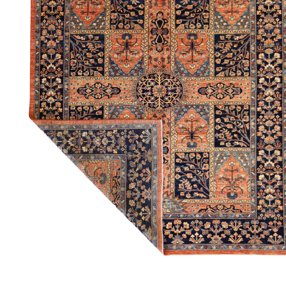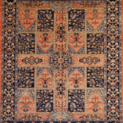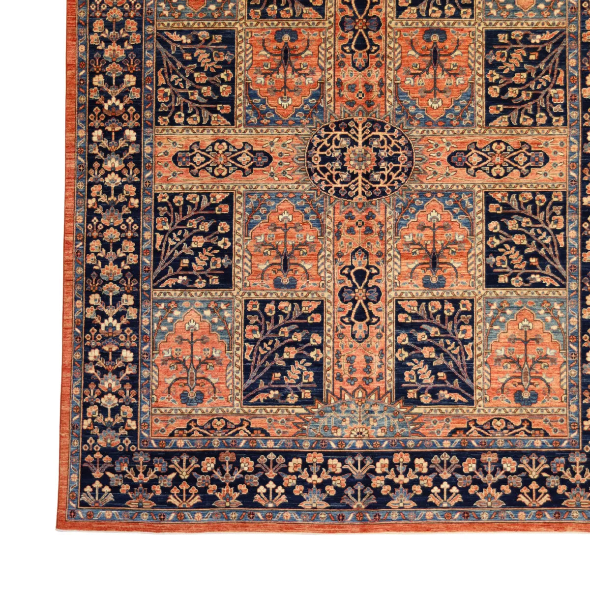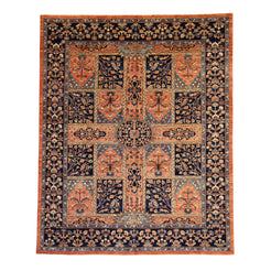 Introduce Classic Charm with PANNEL Style. This exquisite KAZAK rug, crafted in an elegant pannel design, brings a timeless and structured look to your home. The defined panels on the RUST base create a graceful, organized feel, beautifully framed by the contrasting NAVY border. Ideal for traditional, transitional, or even contemporary spaces, this pannel rug offers a refined sense of order and beauty. Sourced from PAKISTAN, this handmade masterpiece combines enduring craftsmanship with a sophisticated touch. Measuring 8' 1" x 9' 11", it���s made to enrich your home with lasting style.
