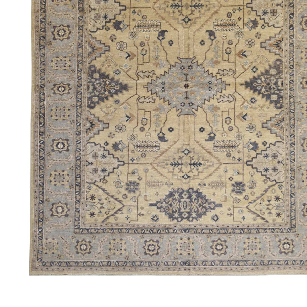 Add a Bold Touch with GEOMETRIC Style. This stunning PESHAWAR rug, crafted in a striking geometric design, brings a modern and bold look to your home. The clean, sharp lines and symmetrical patterns on the BEIGE base create a dynamic visual effect, making this rug a perfect statement piece. A contrasting BLUE border adds a touch of sophistication, enhancing the overall design. Whether placed in your living room, office, or any open space, the geometric pattern brings structure and energy to your decor. Sourced from PAKISTAN, this handmade rug is a lasting investment in craftsmanship and style. Measuring 8' 3" x 10' 0", it elevates your space while standing the test of time.