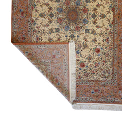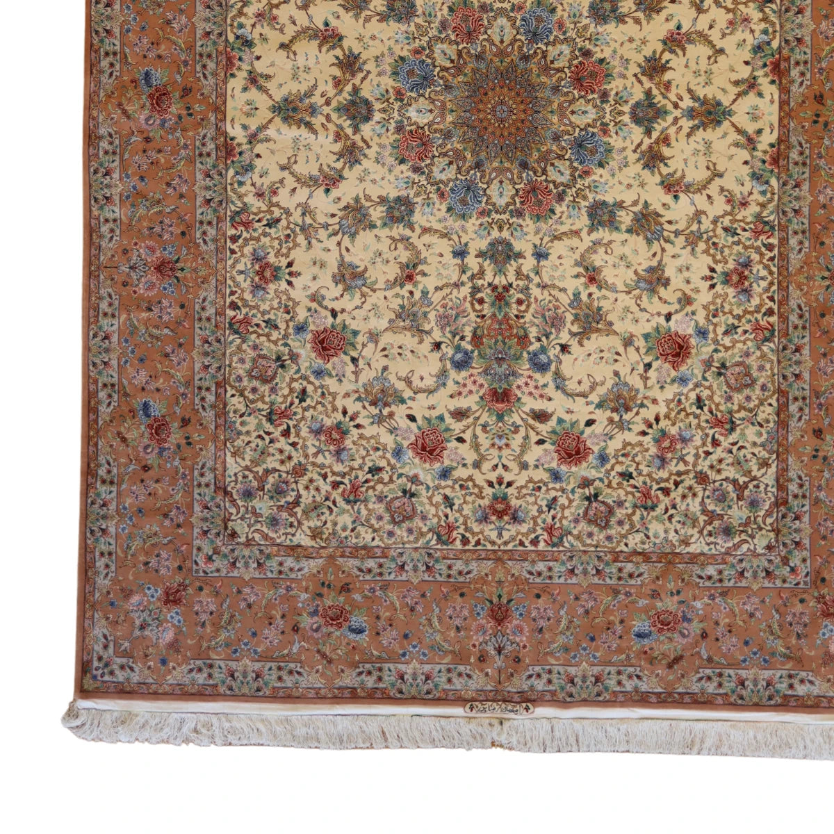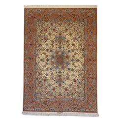Woven from high-quality SILK&WOOL, this rug delivers lasting durability and a luxurious feel underfoot. The deep BEIGE base color is beautifully complemented by a PINK border, creating a striking visual balance.