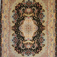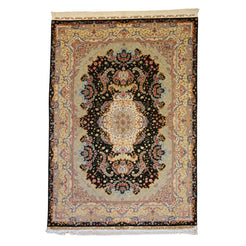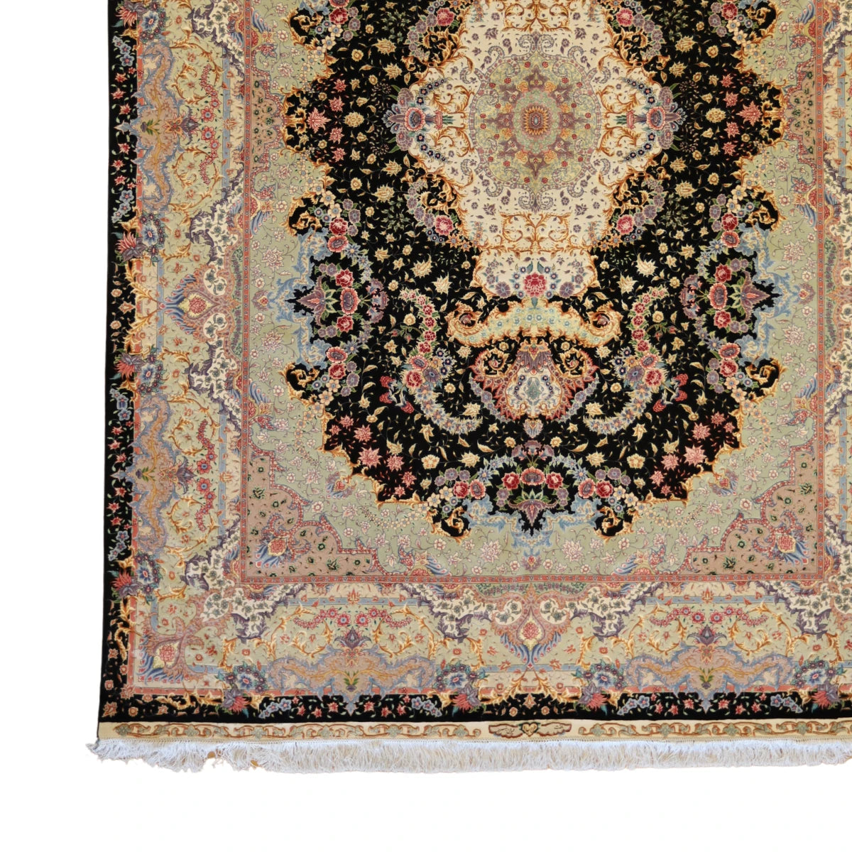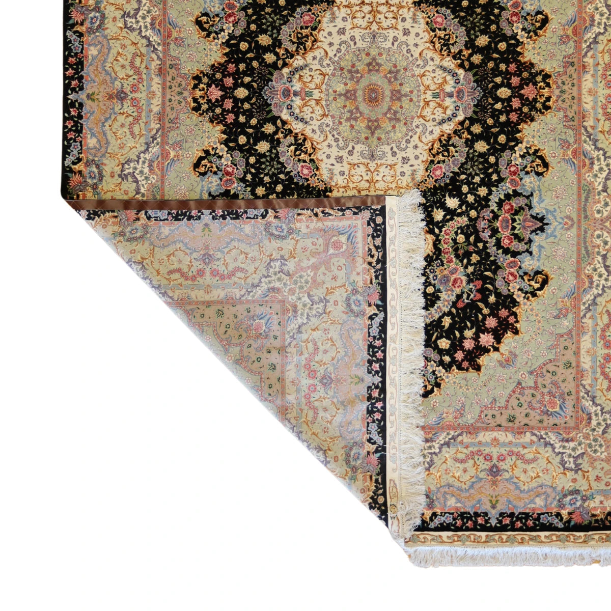 Woven from high-quality SILK&WOOL, this rug delivers lasting durability and a luxurious feel underfoot. The deep BLACK base color is beautifully complemented by a GREEN border, creating a striking visual balance.