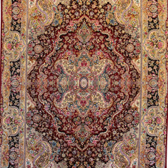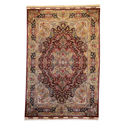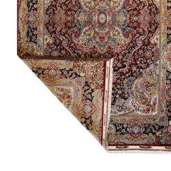 Woven from high-quality SILK&WOOL, this rug delivers lasting durability and a luxurious feel underfoot. The deep RED base color is beautifully complemented by a BLACK border, creating a striking visual balance.