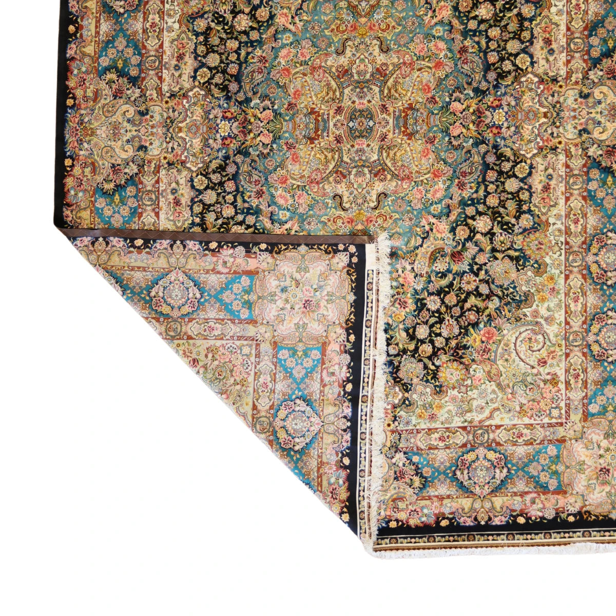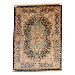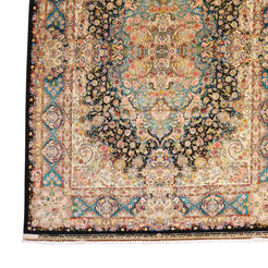 Woven from high-quality SILK&WOOL, this rug delivers lasting durability and a luxurious feel underfoot. The deep BLACK base color is beautifully complemented by a TEAL border, creating a striking visual balance.