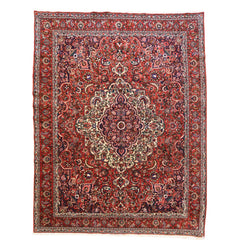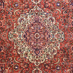 Add Timeless Elegance to Your Space with an Antique Rug. This exquisite BAKHTIARI antique rug, showcasing a rich heritage and intricate artistry, is a testament to timeless beauty. The striking RED background, paired with its intricate RED border, creates a captivating contrast that adds sophistication to any room. Perfect for your living room, dining area, or study, this rug blends style with history to enrich your decor. Handcrafted in PERSIA, this rug reflects the skilled craftsmanship and cultural legacy of its origin. With dimensions of 9'6" x 12'8" , its high-quality construction ensures lasting beauty for generations to come.